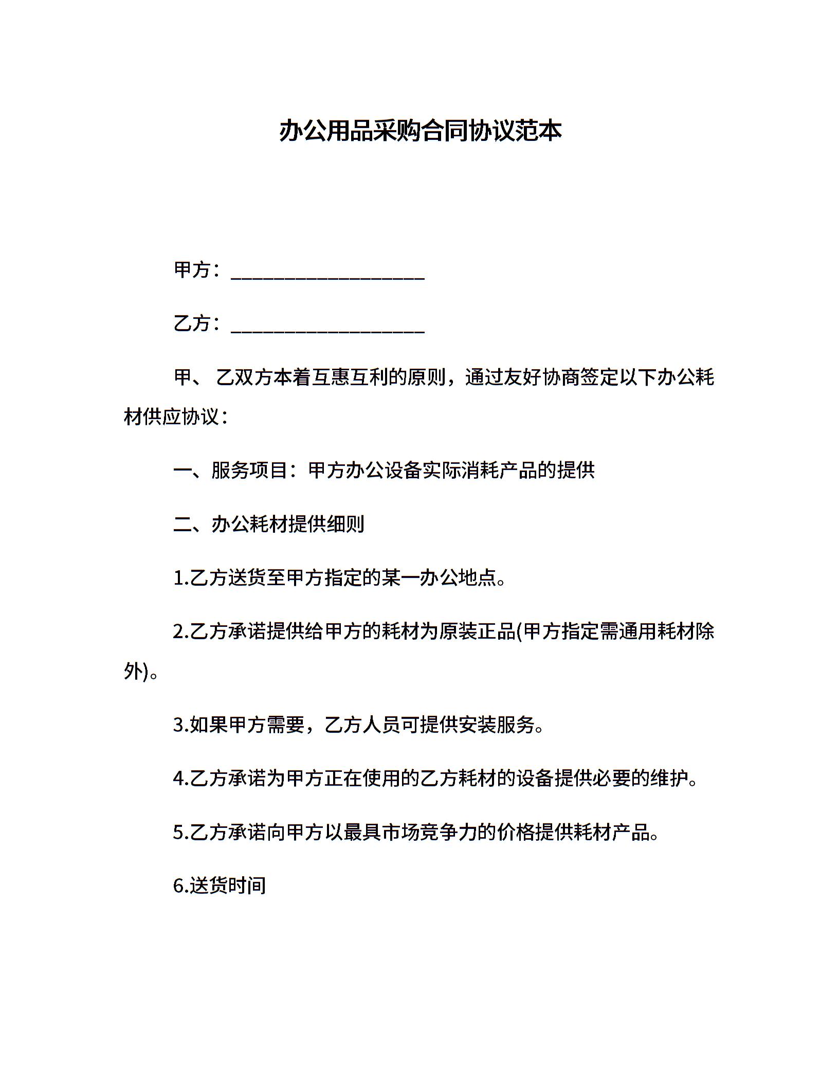 办公用品采购合同协议范本