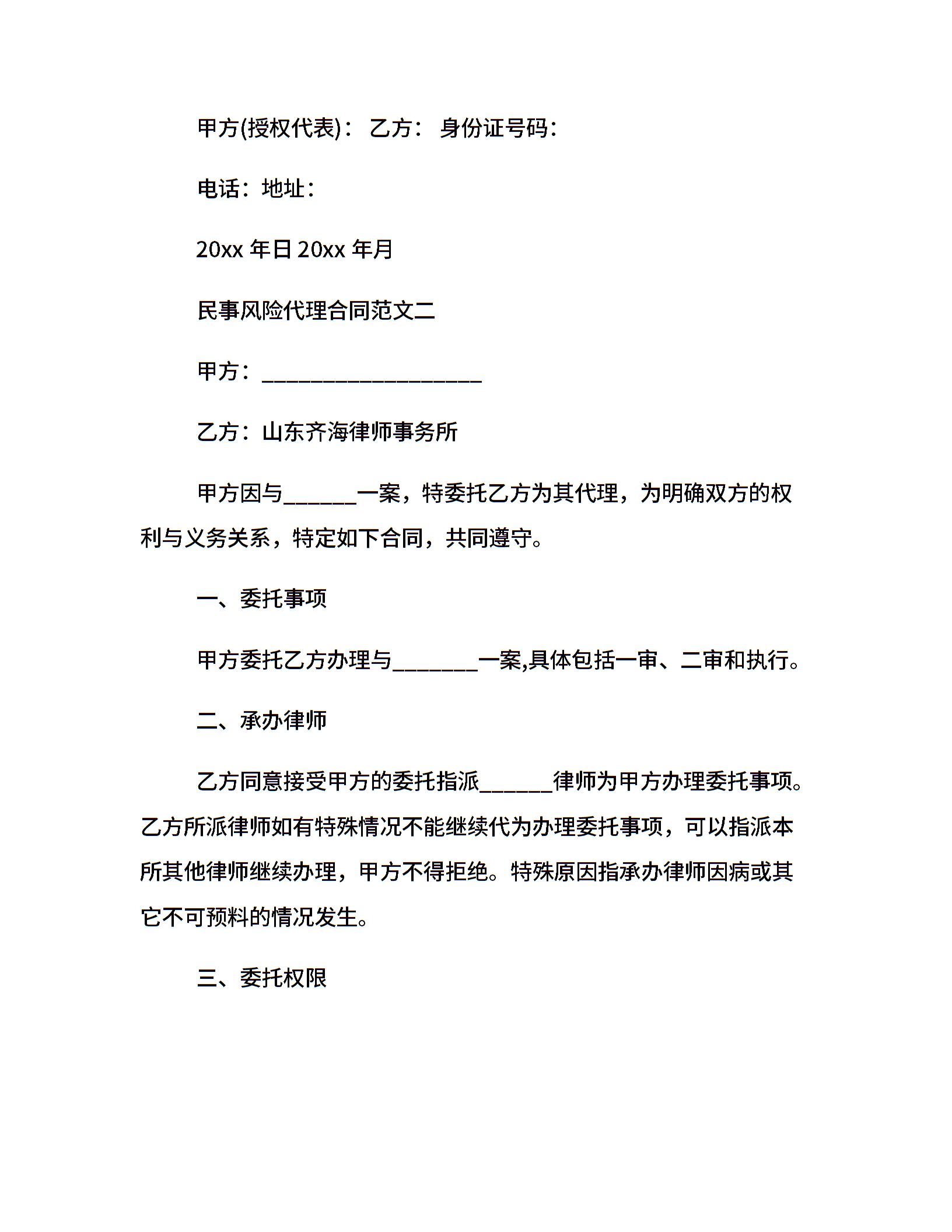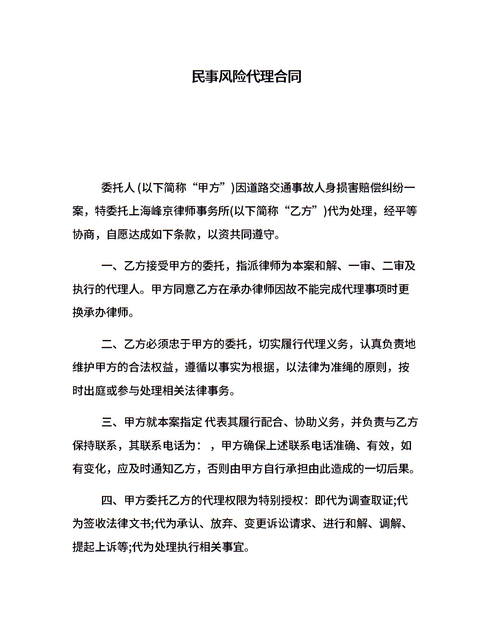民事风险代理合同