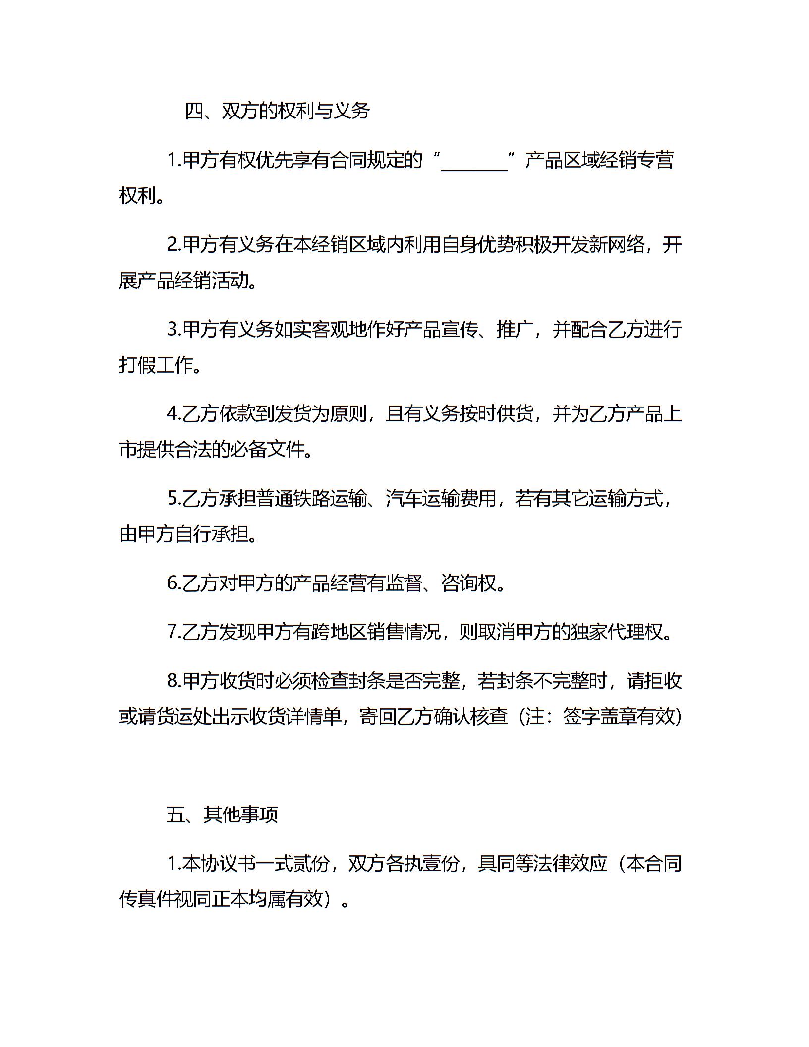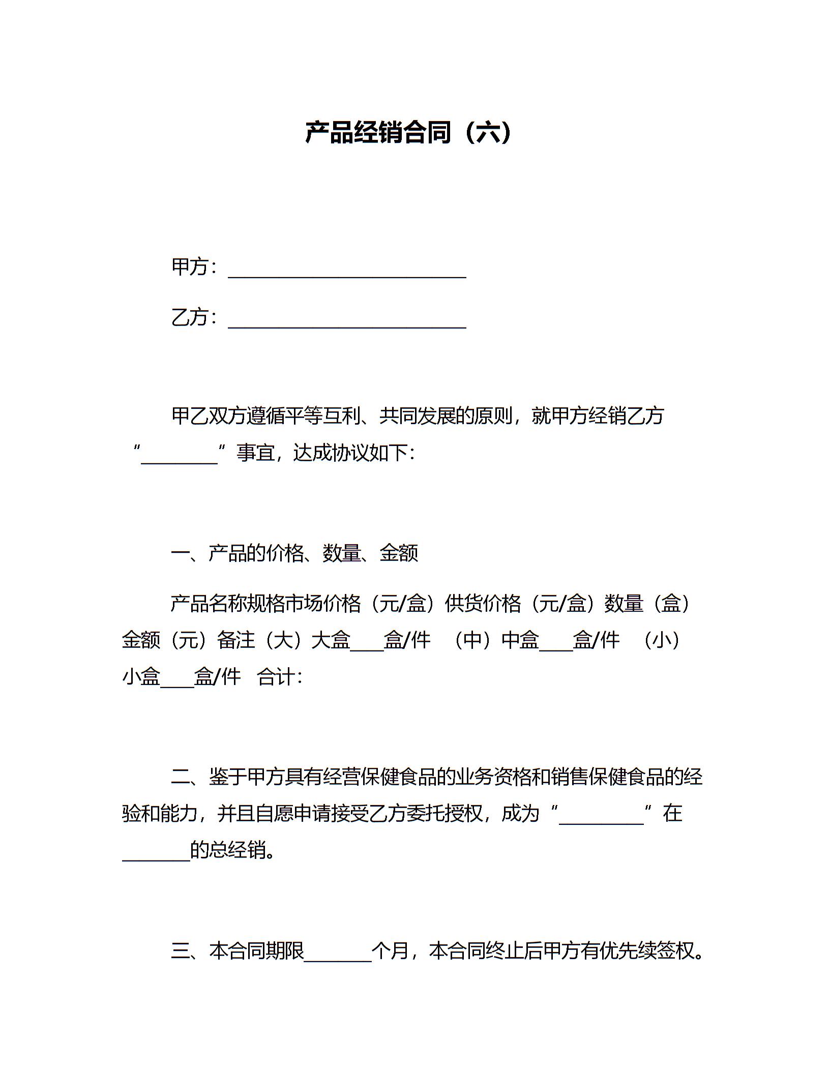 产品经销合同(六)