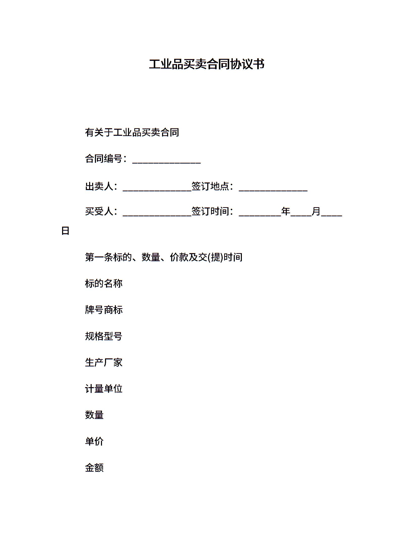 工业品买卖合同协议书