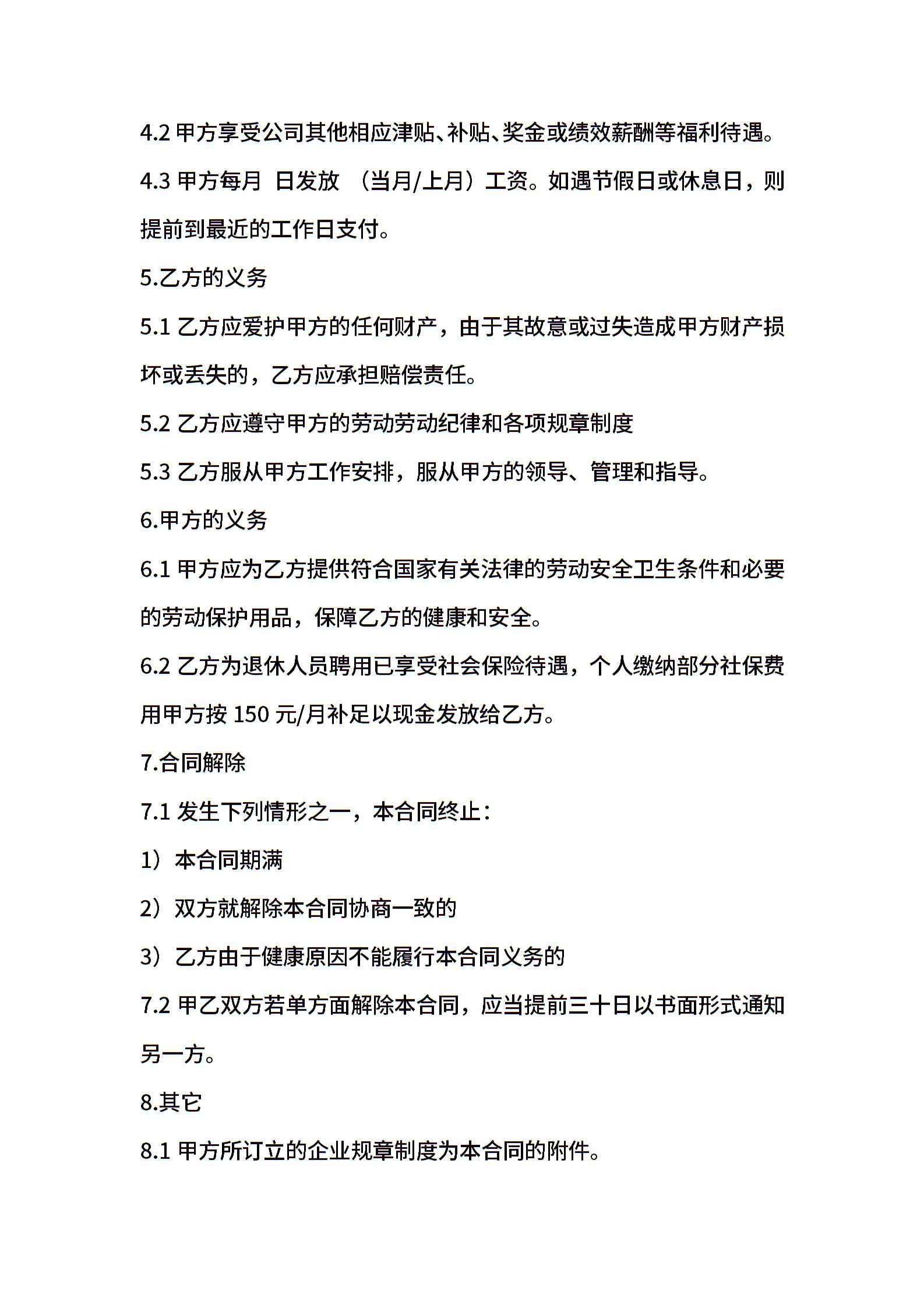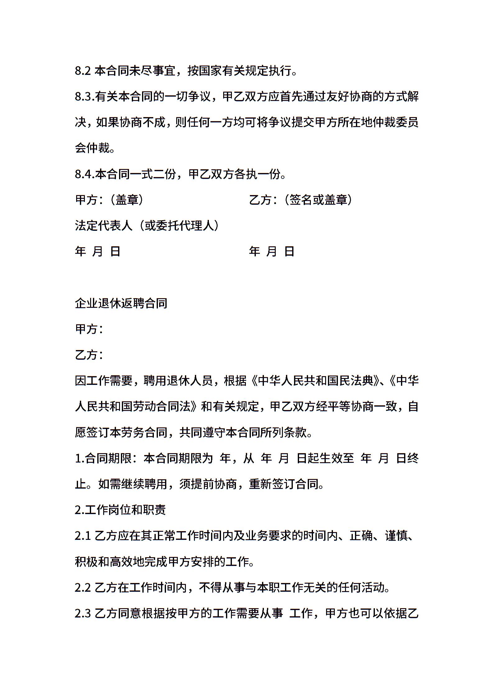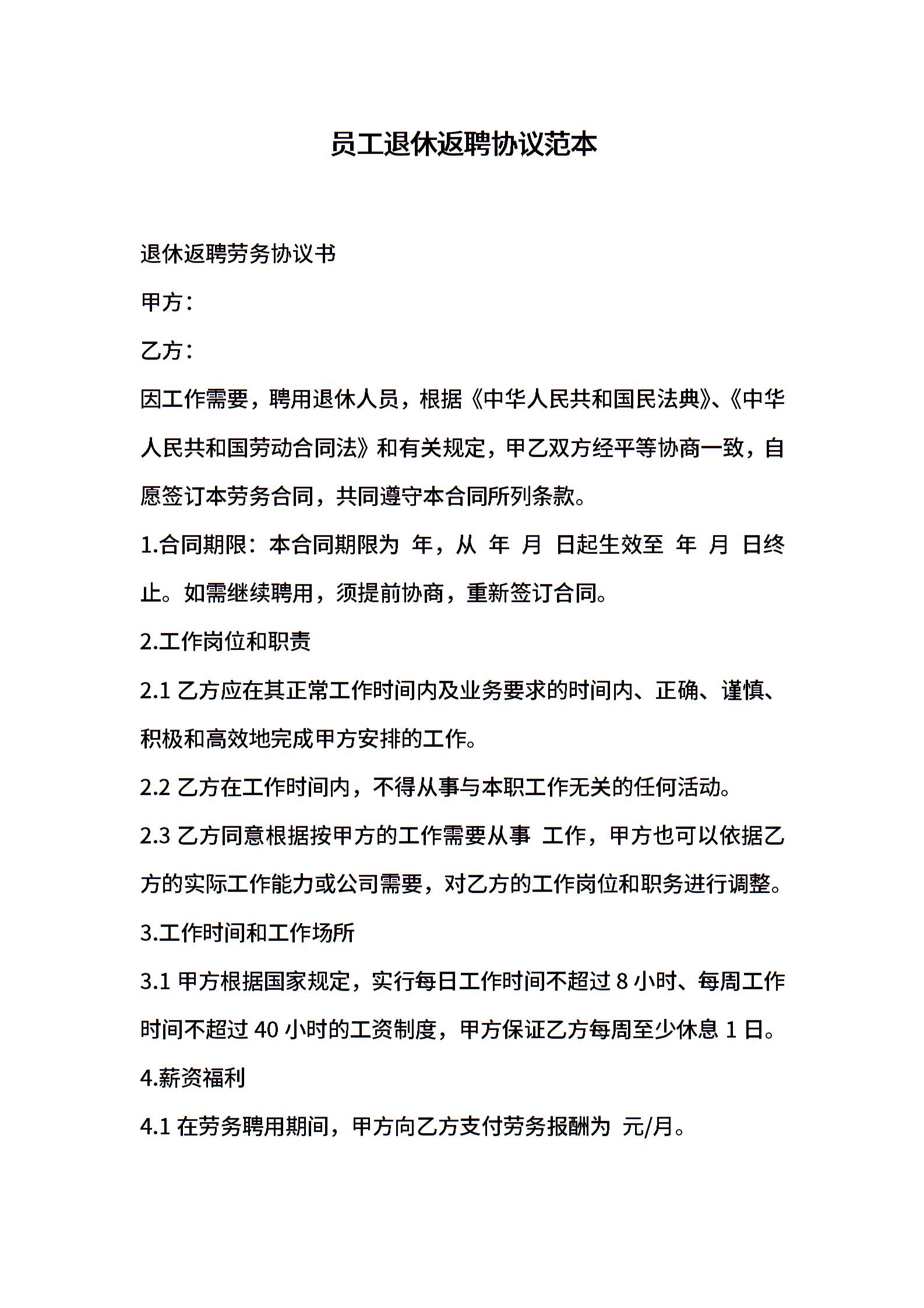 员工退休返聘协议范本