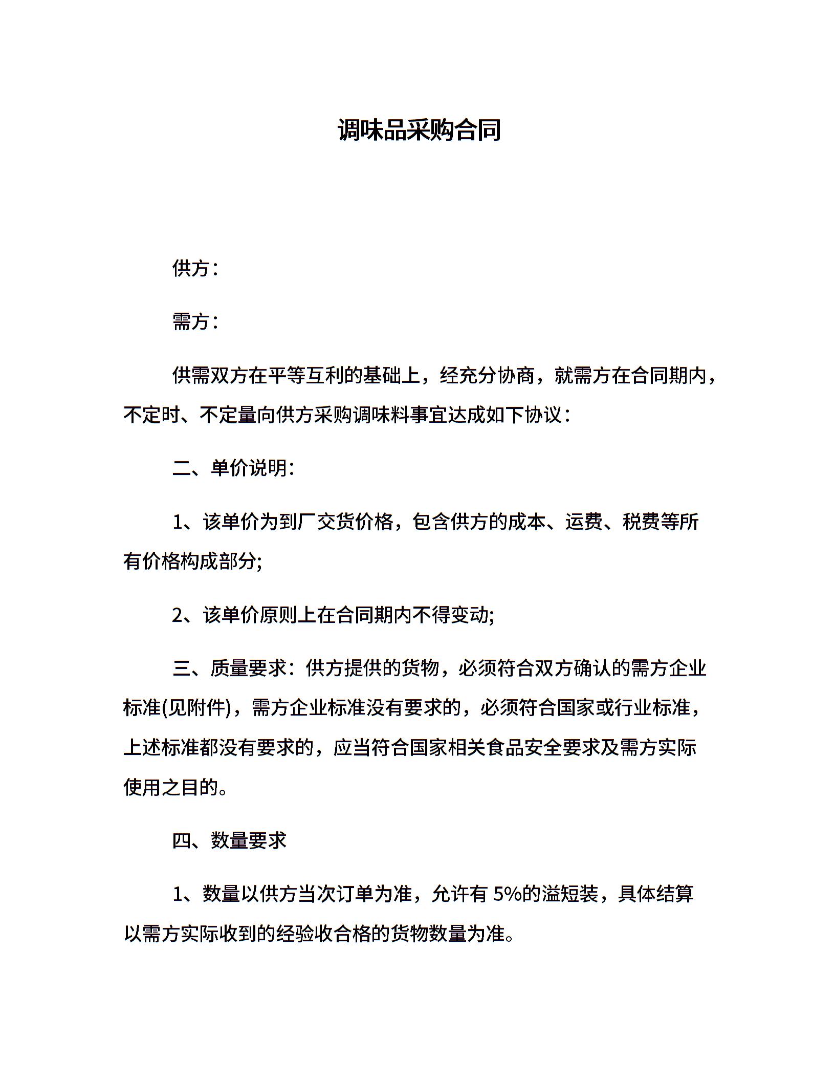 调味品采购合同