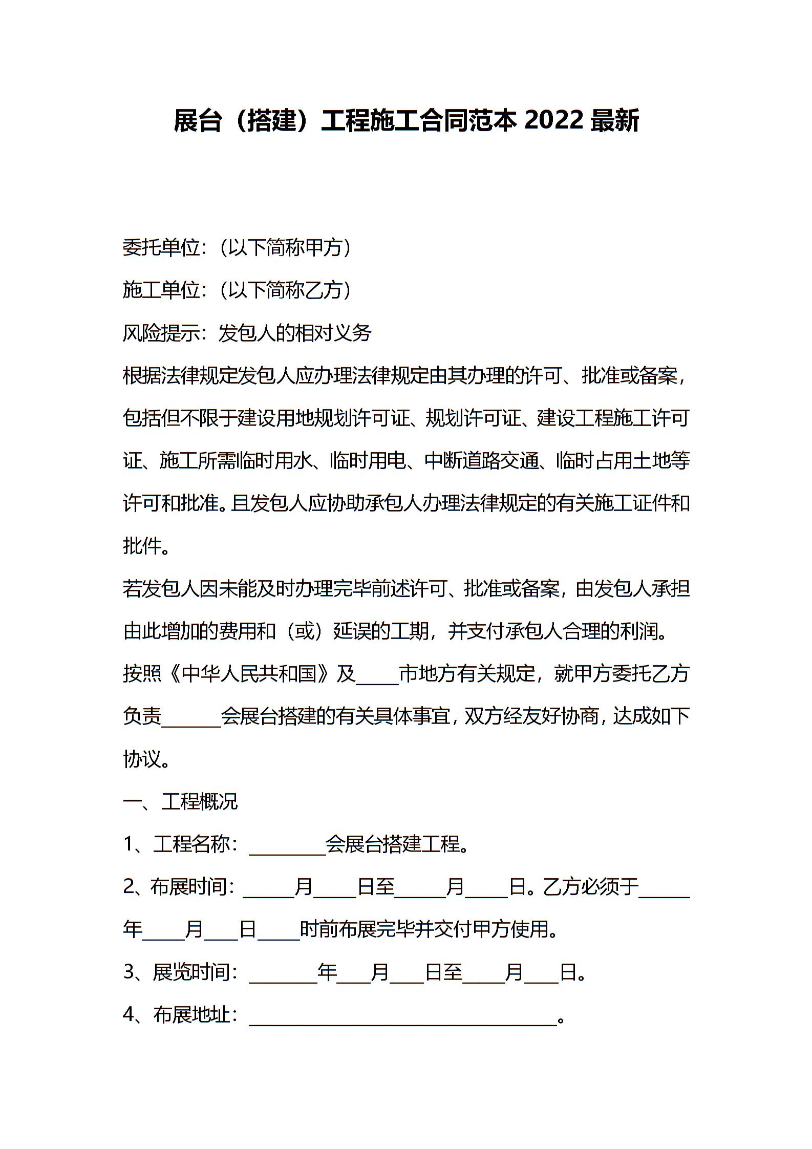 展台(搭建)工程施工合同范本2022最新