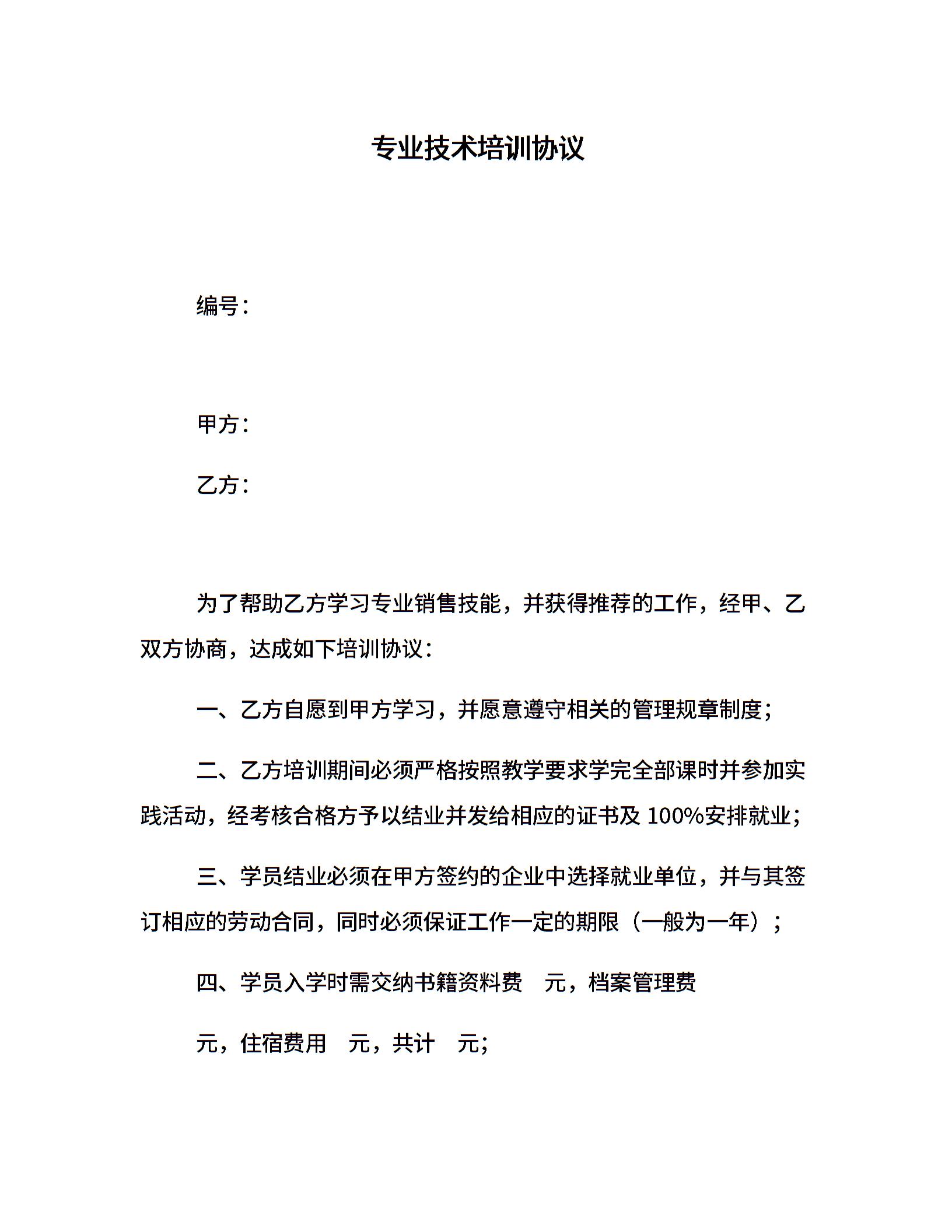 专业技术培训协议