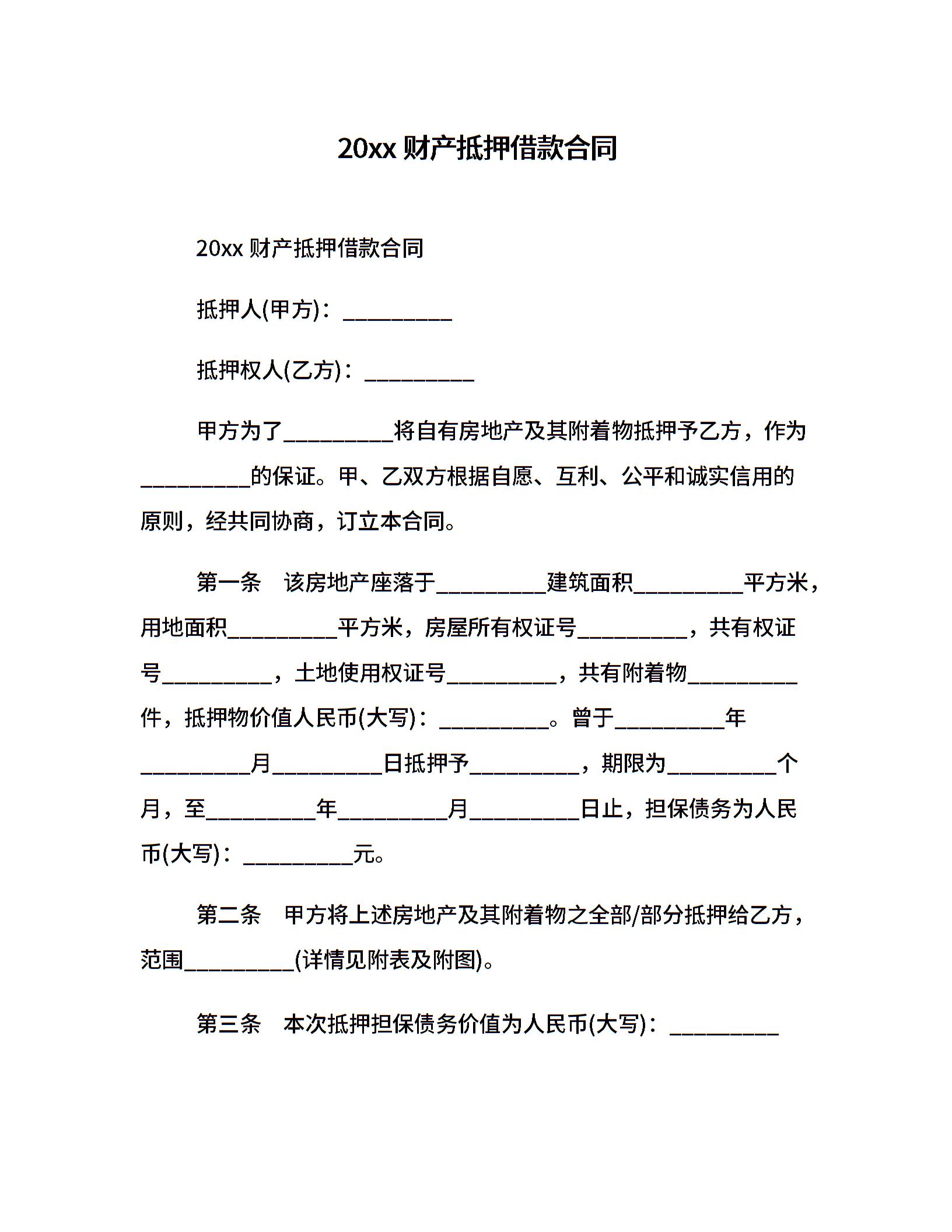 20xx财产抵押借款合同