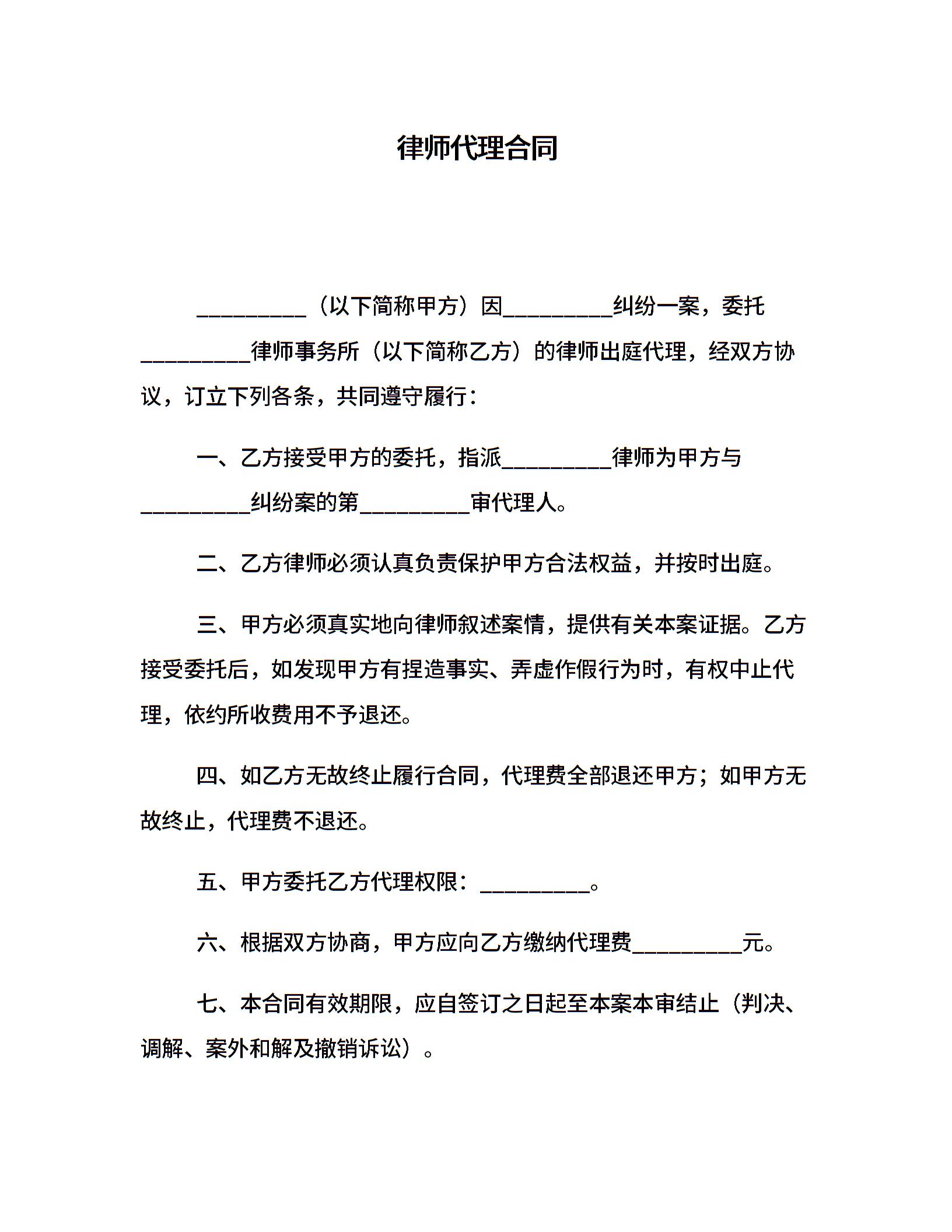 律师代理合同