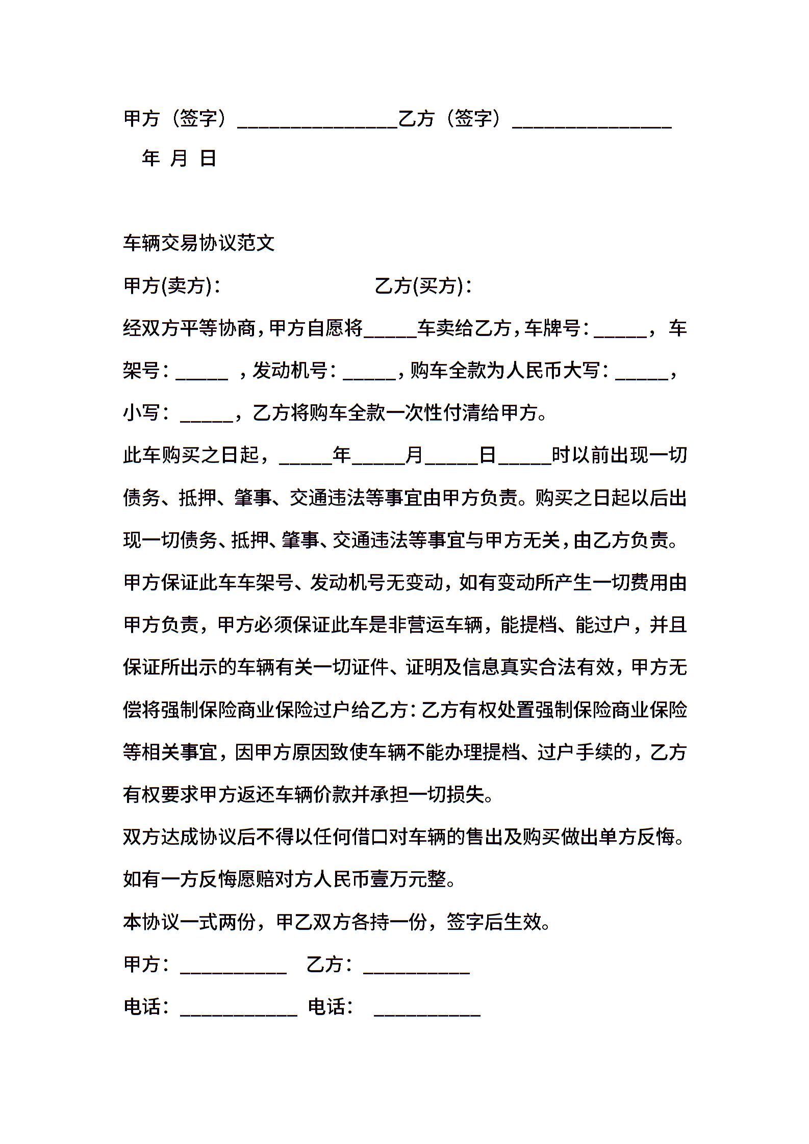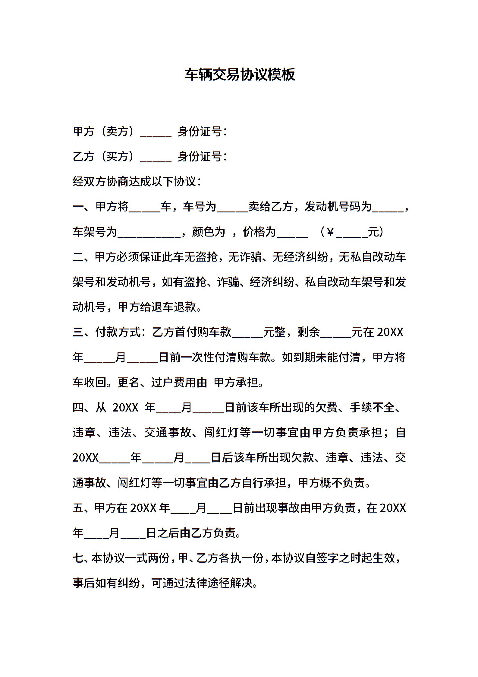车辆交易协议模板
