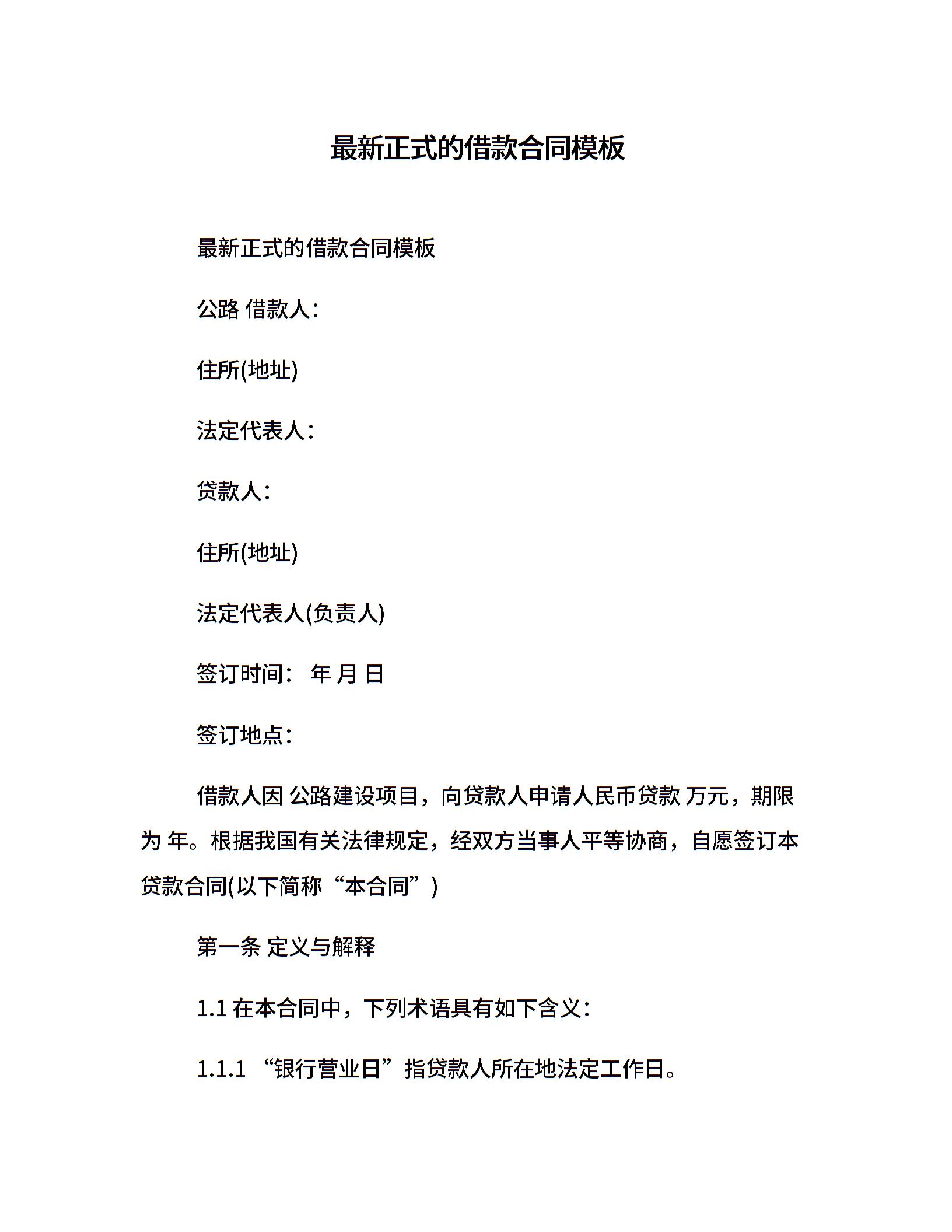 最新正式的借款合同模板