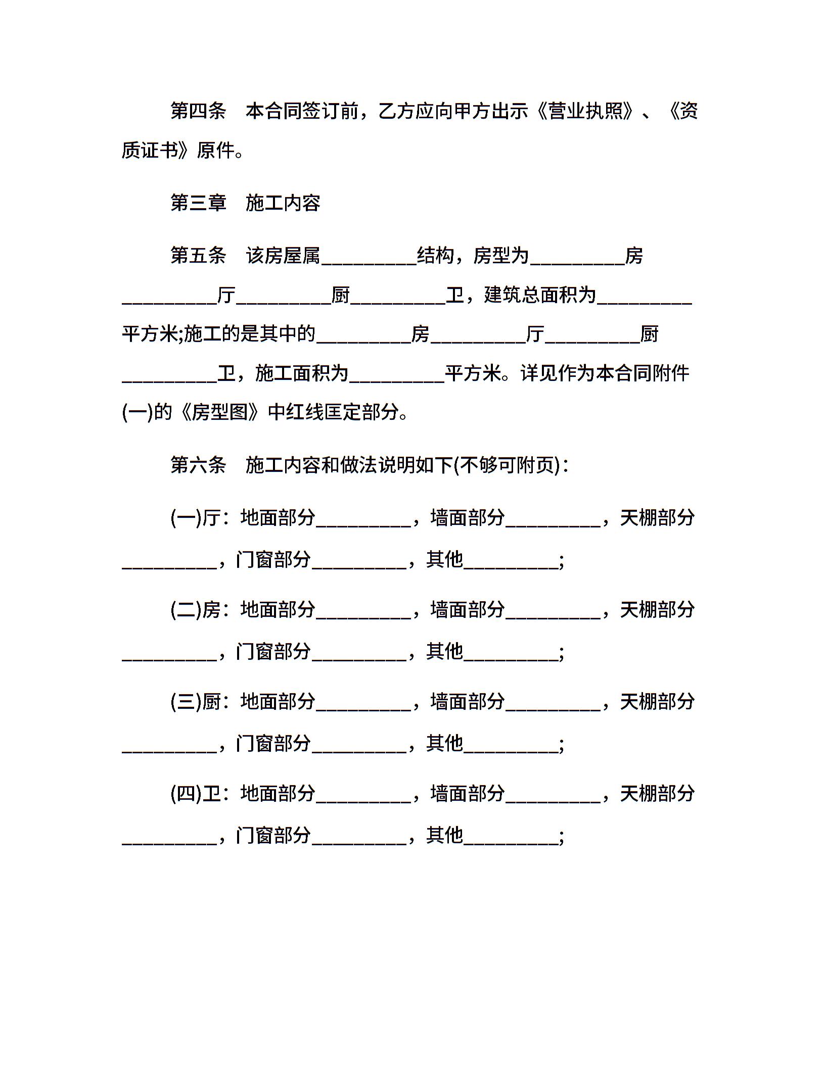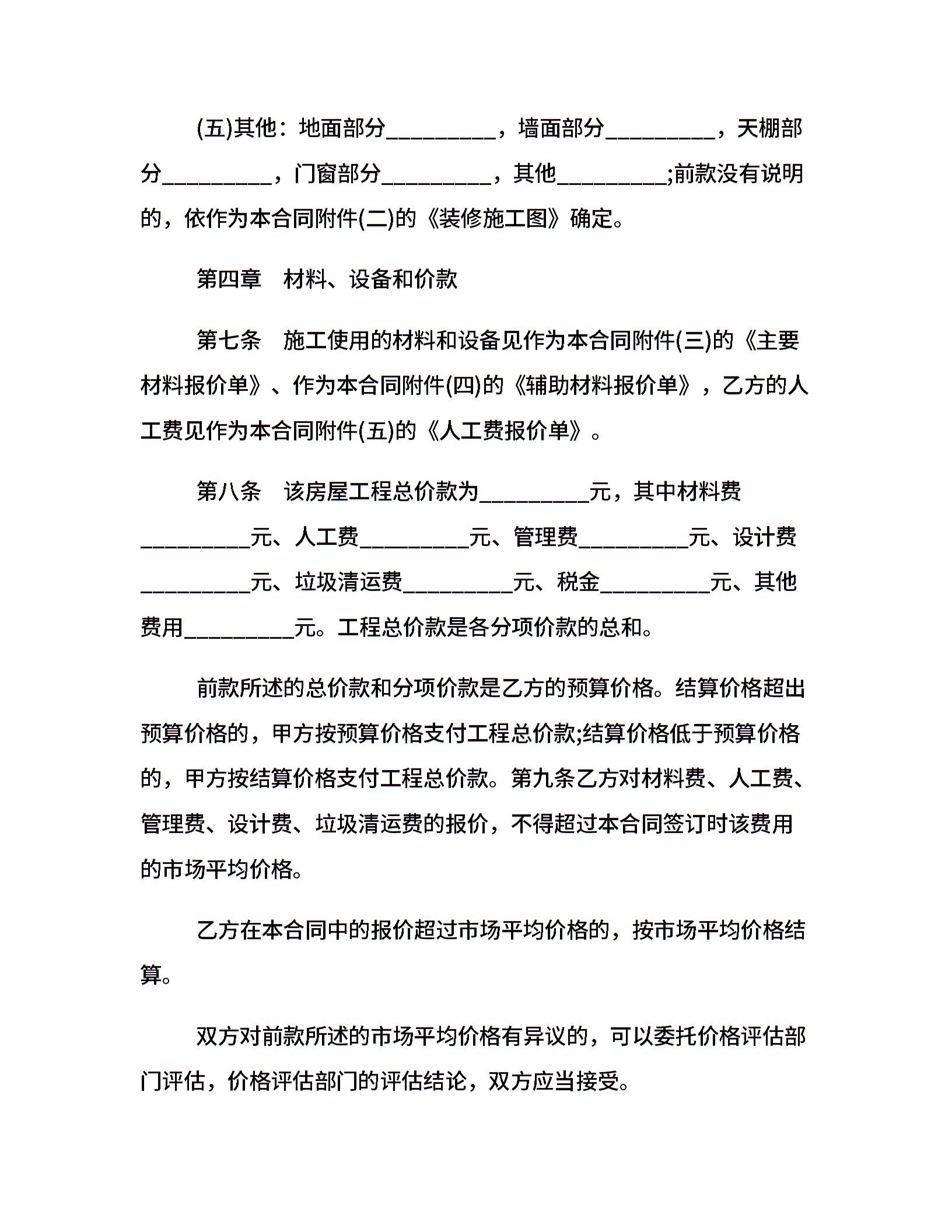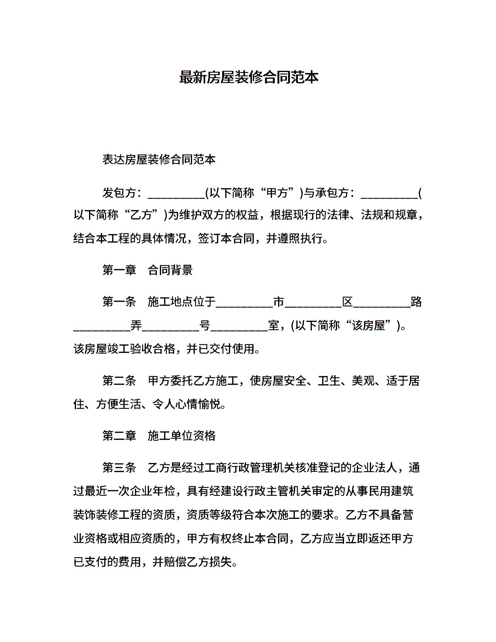 最新房屋装修合同范本