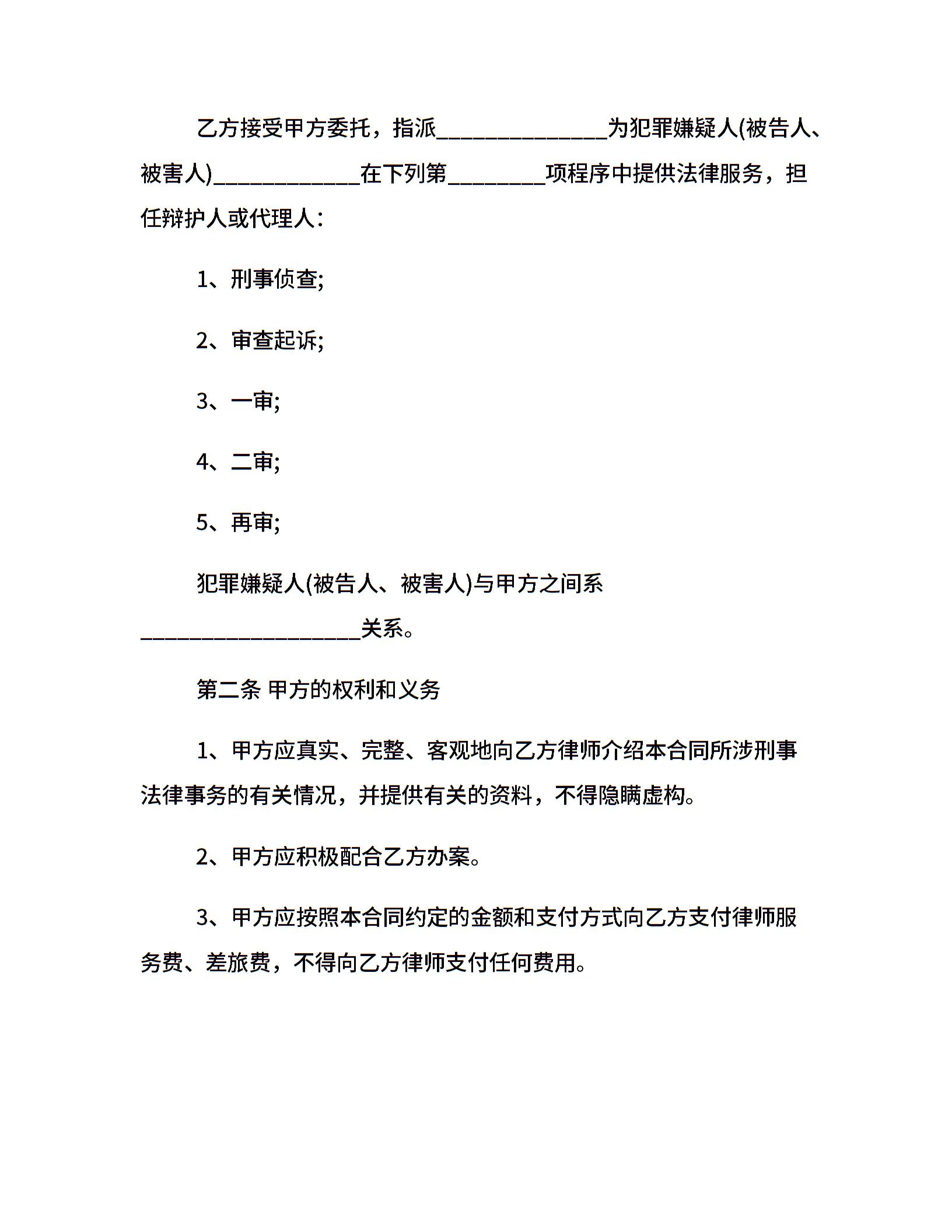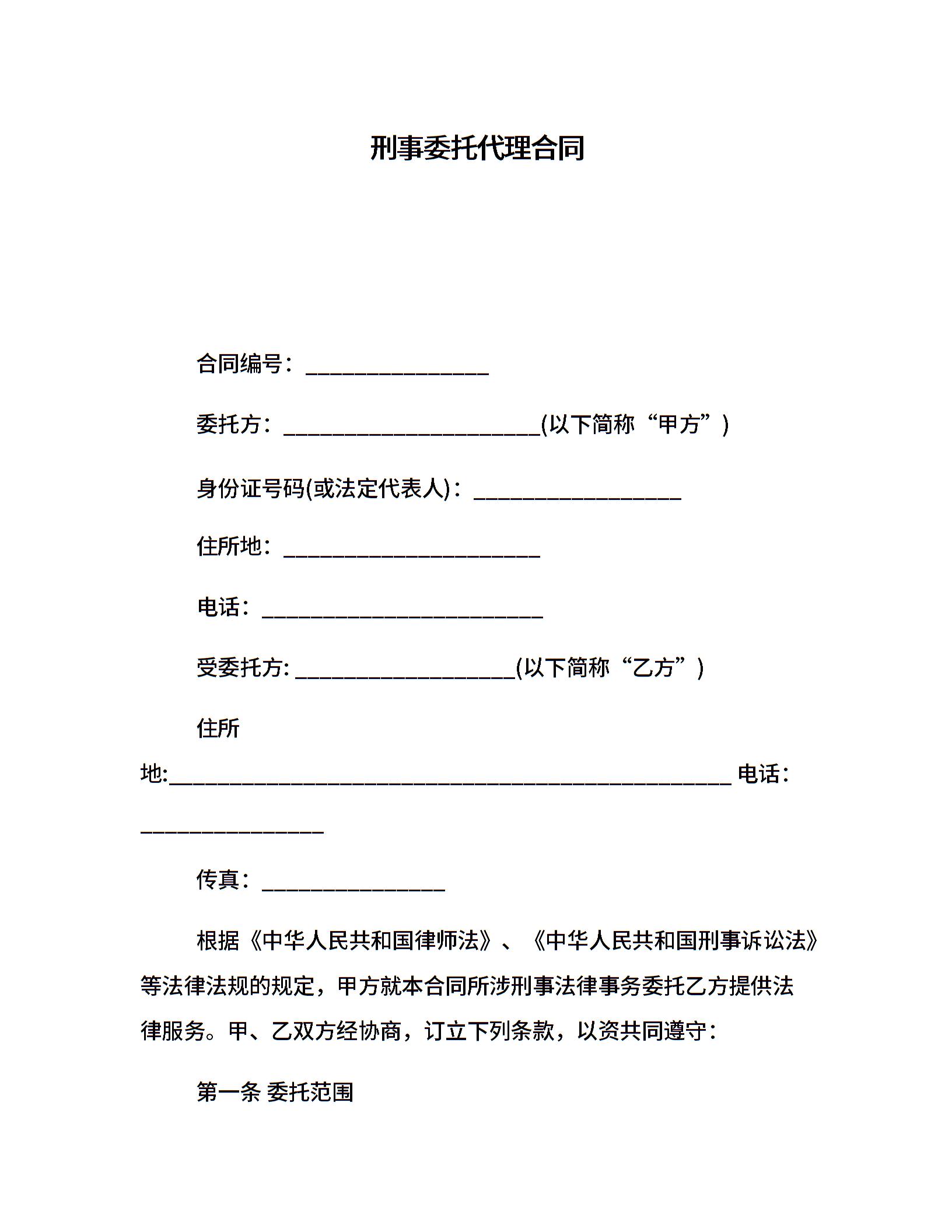 刑事委托代理合同