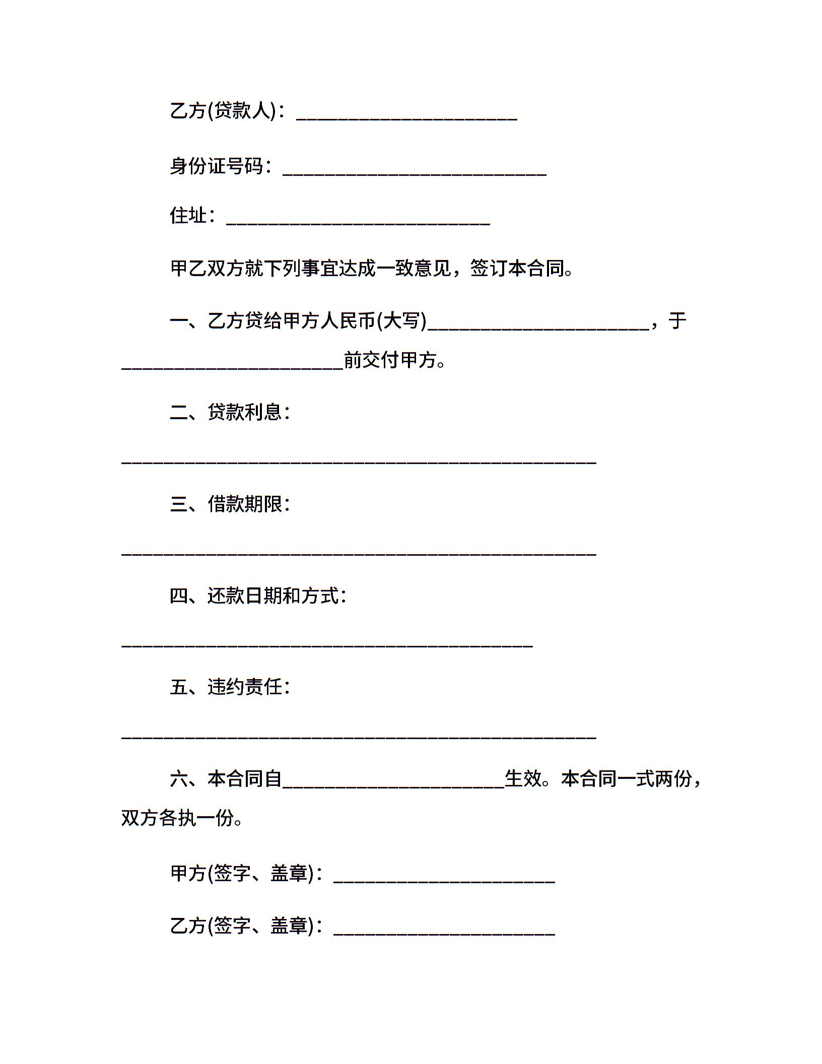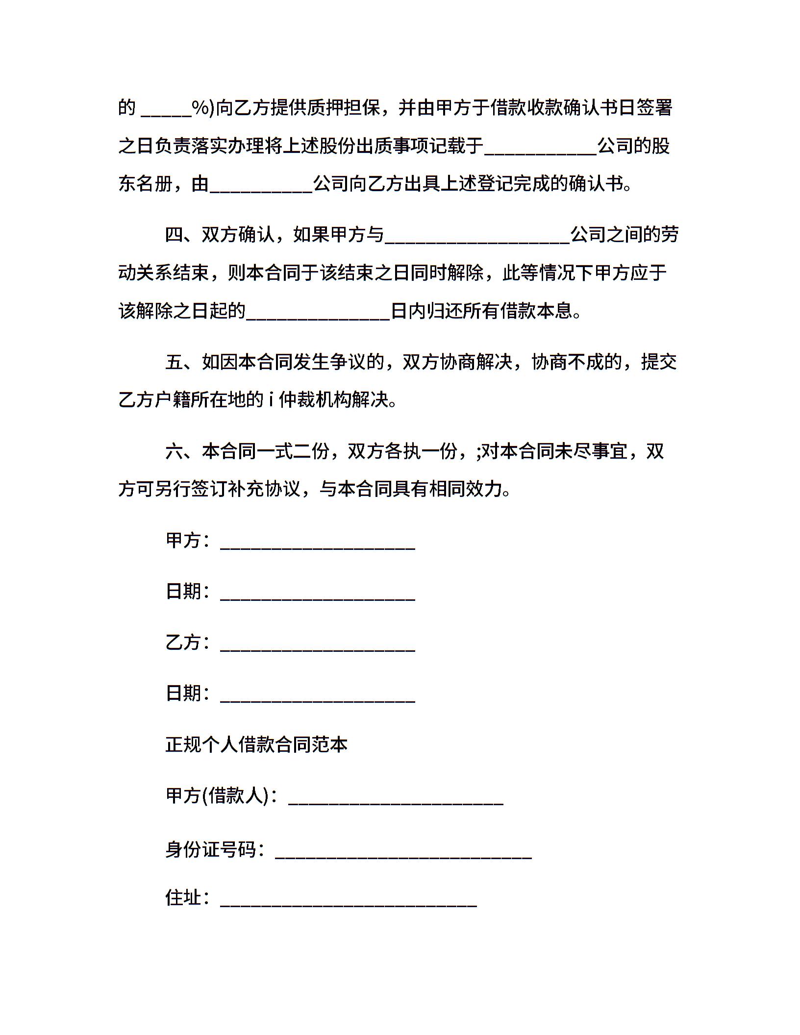 个人借款合同范本【正规】