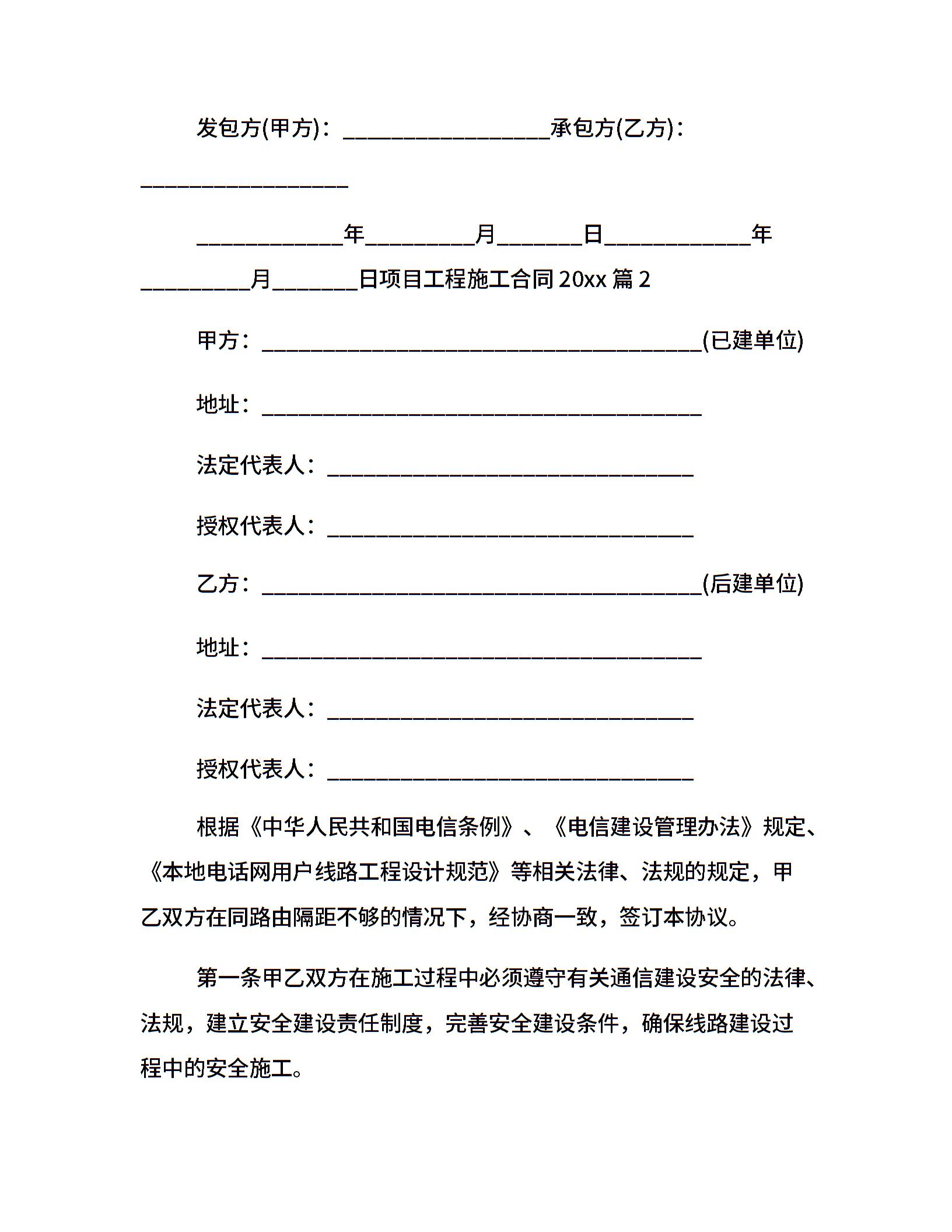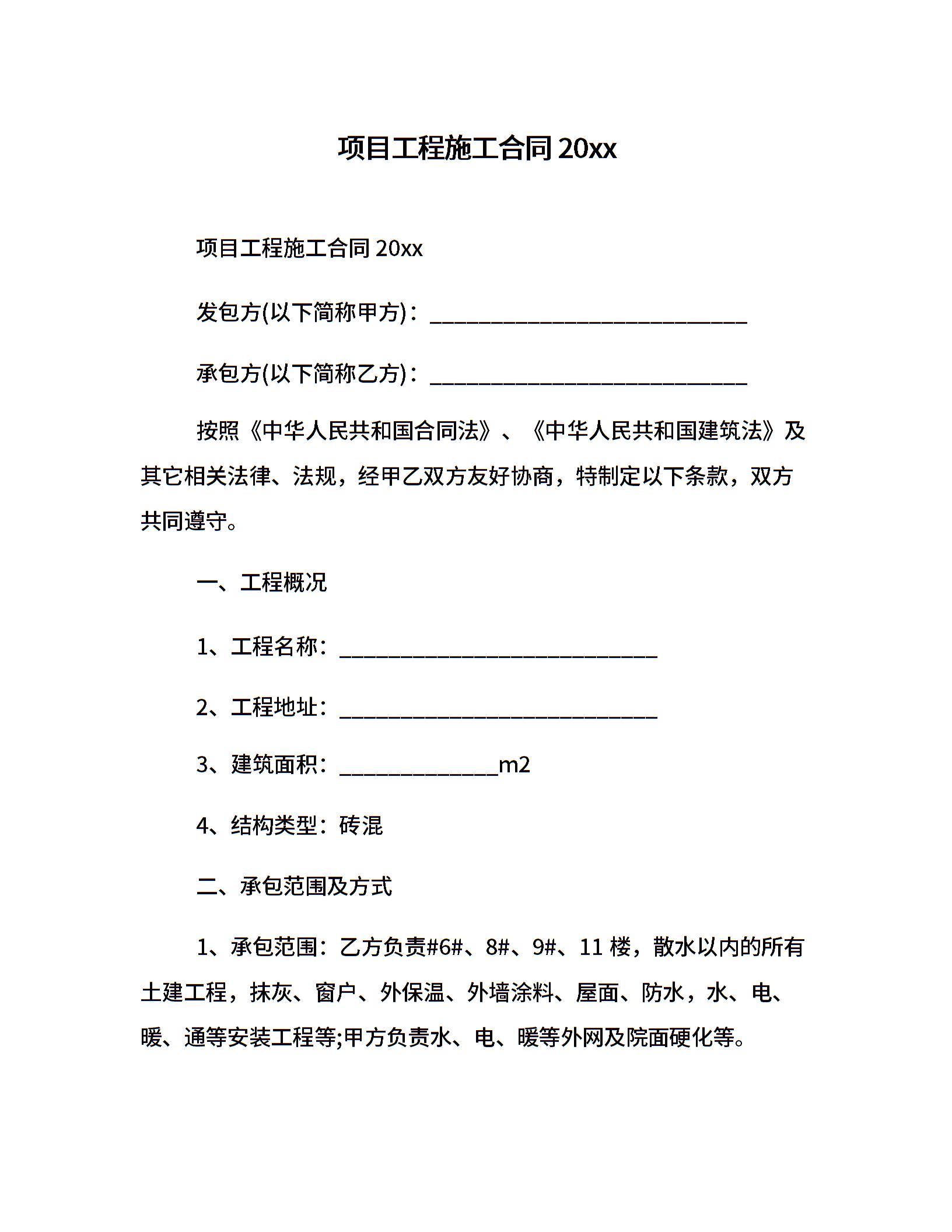项目工程施工合同20xx