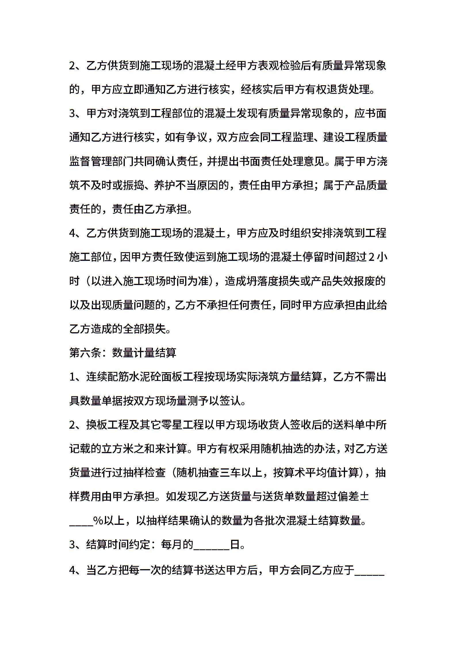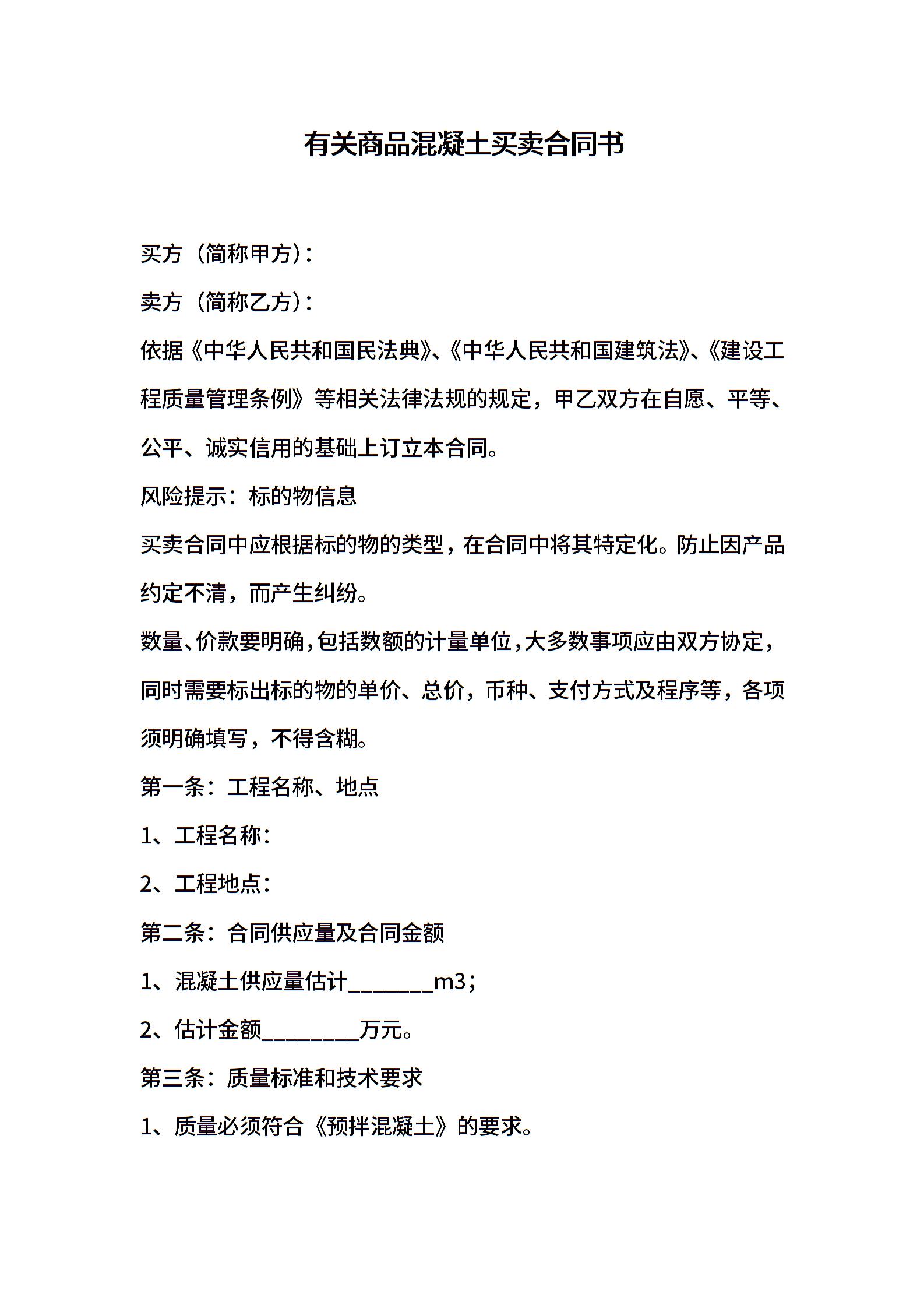 有关商品混凝土买卖合同书