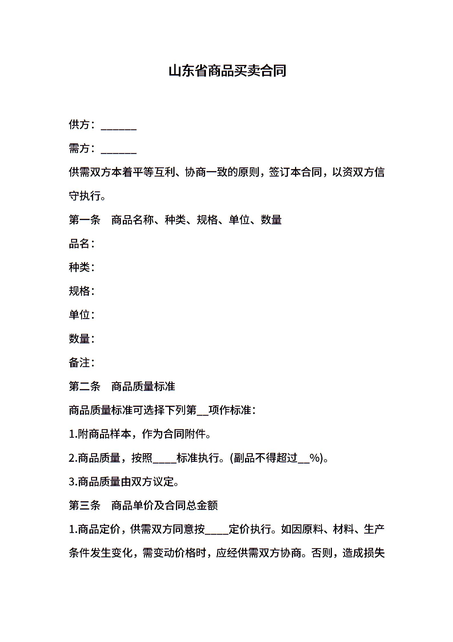 山东省商品买卖合同