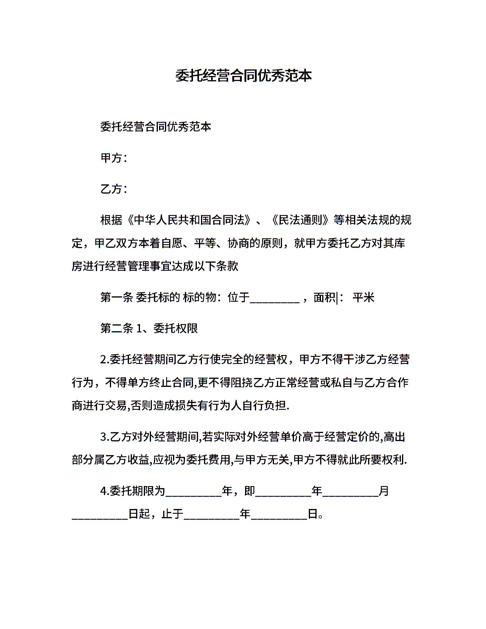 委托经营合同优秀范本
