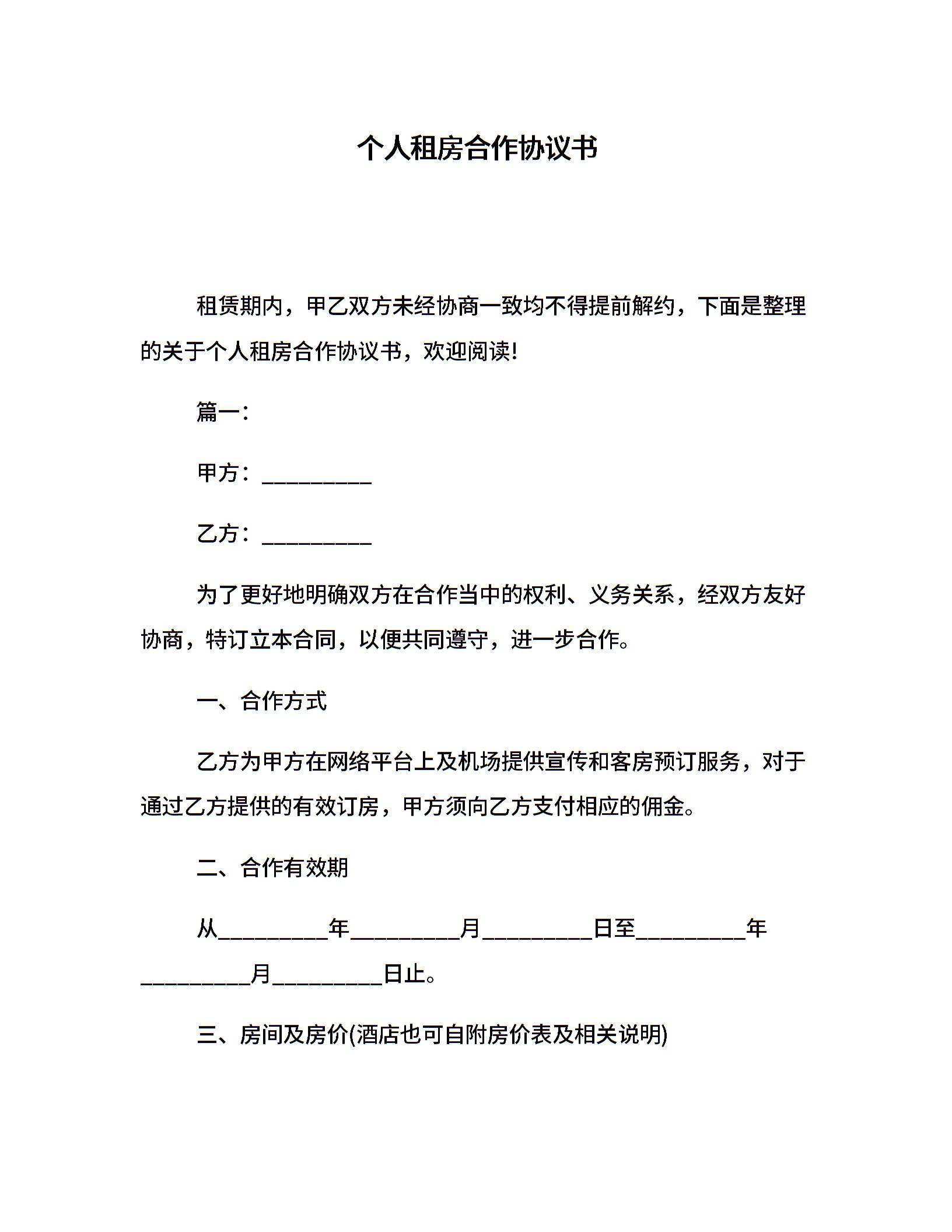 个人租房合作协议书