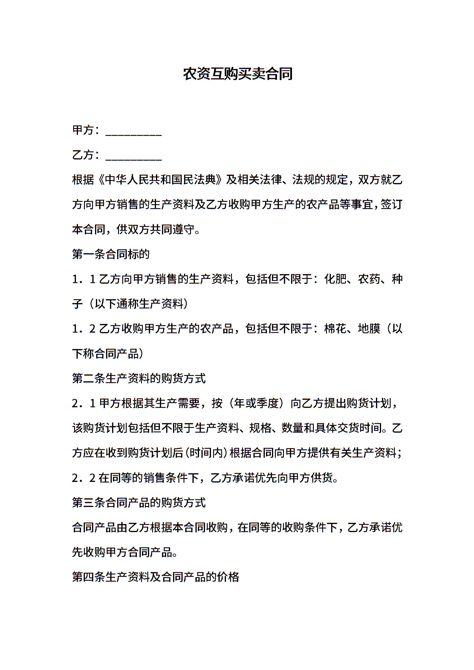 农资互购买卖合同