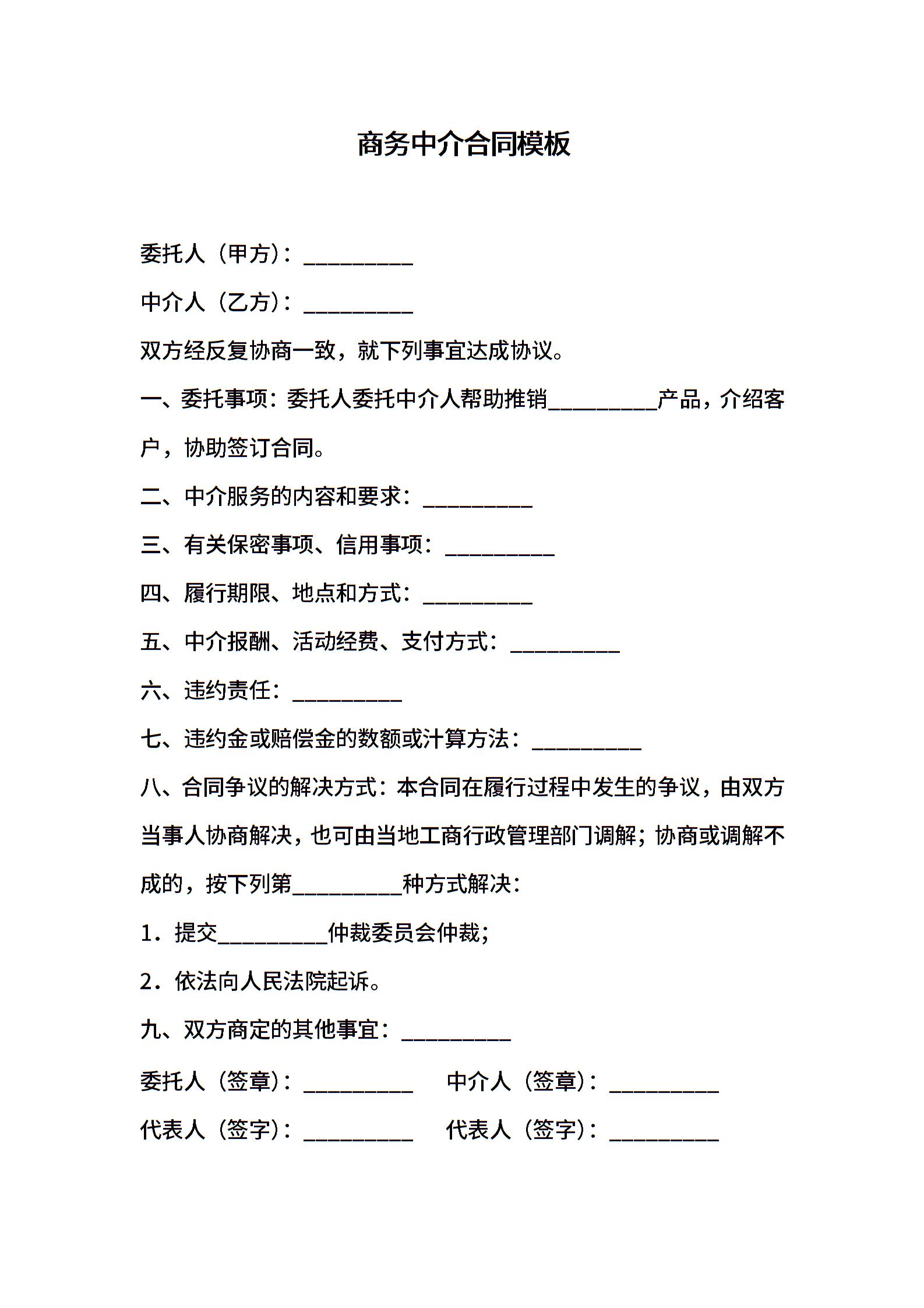 商务中介合同模板
