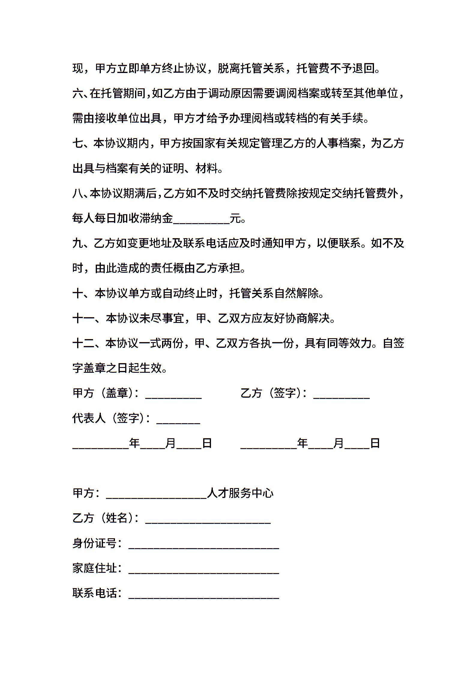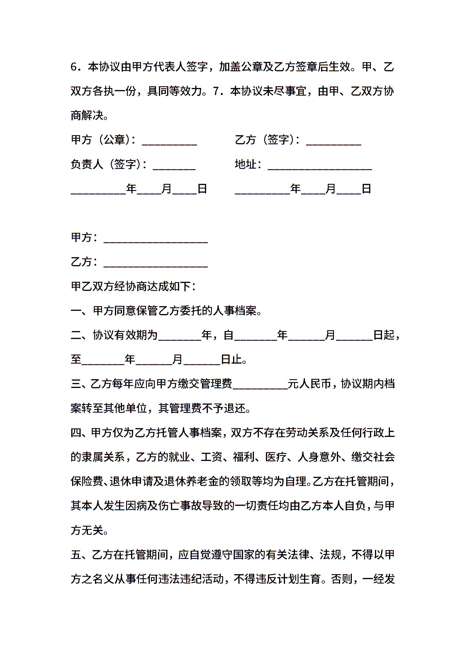 委托保管档案协议范本