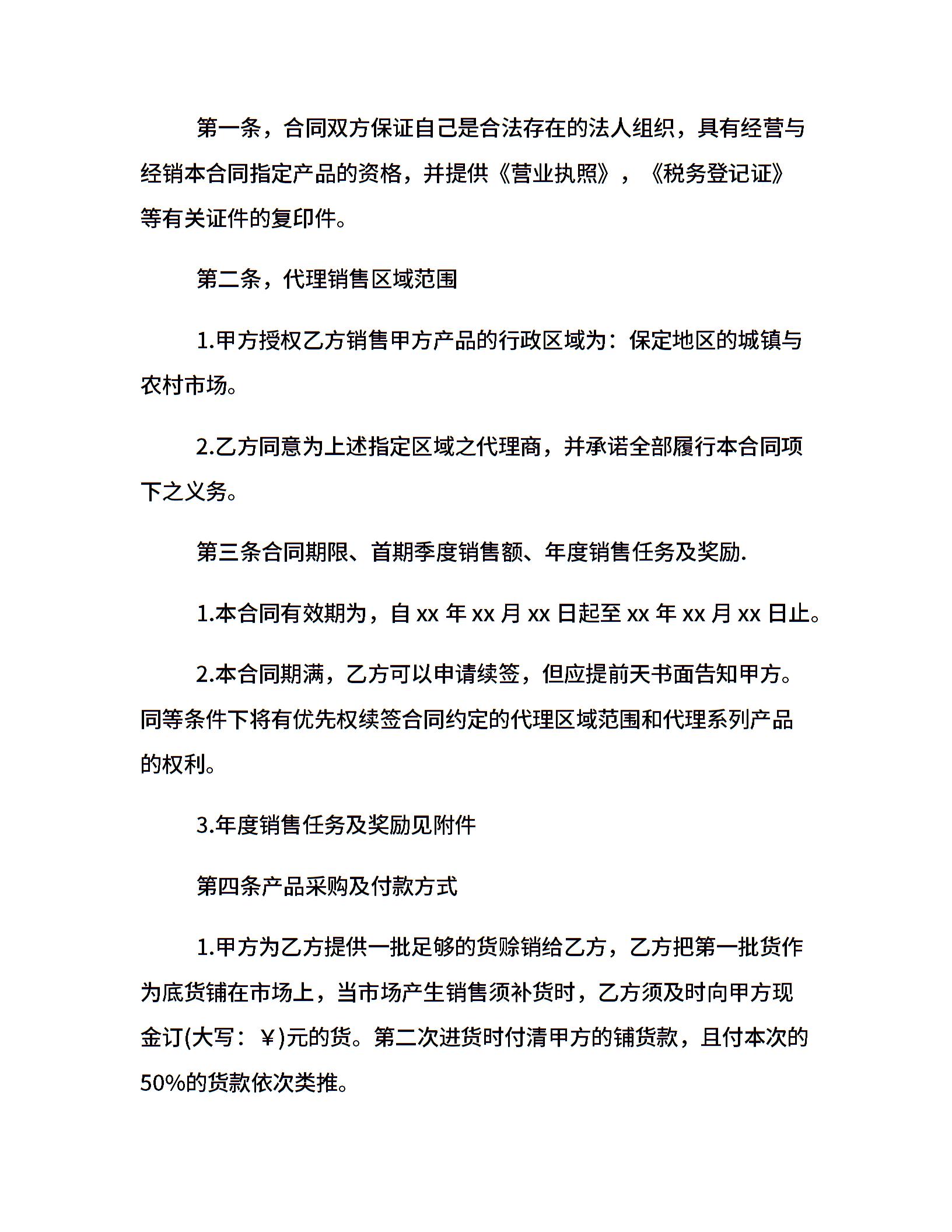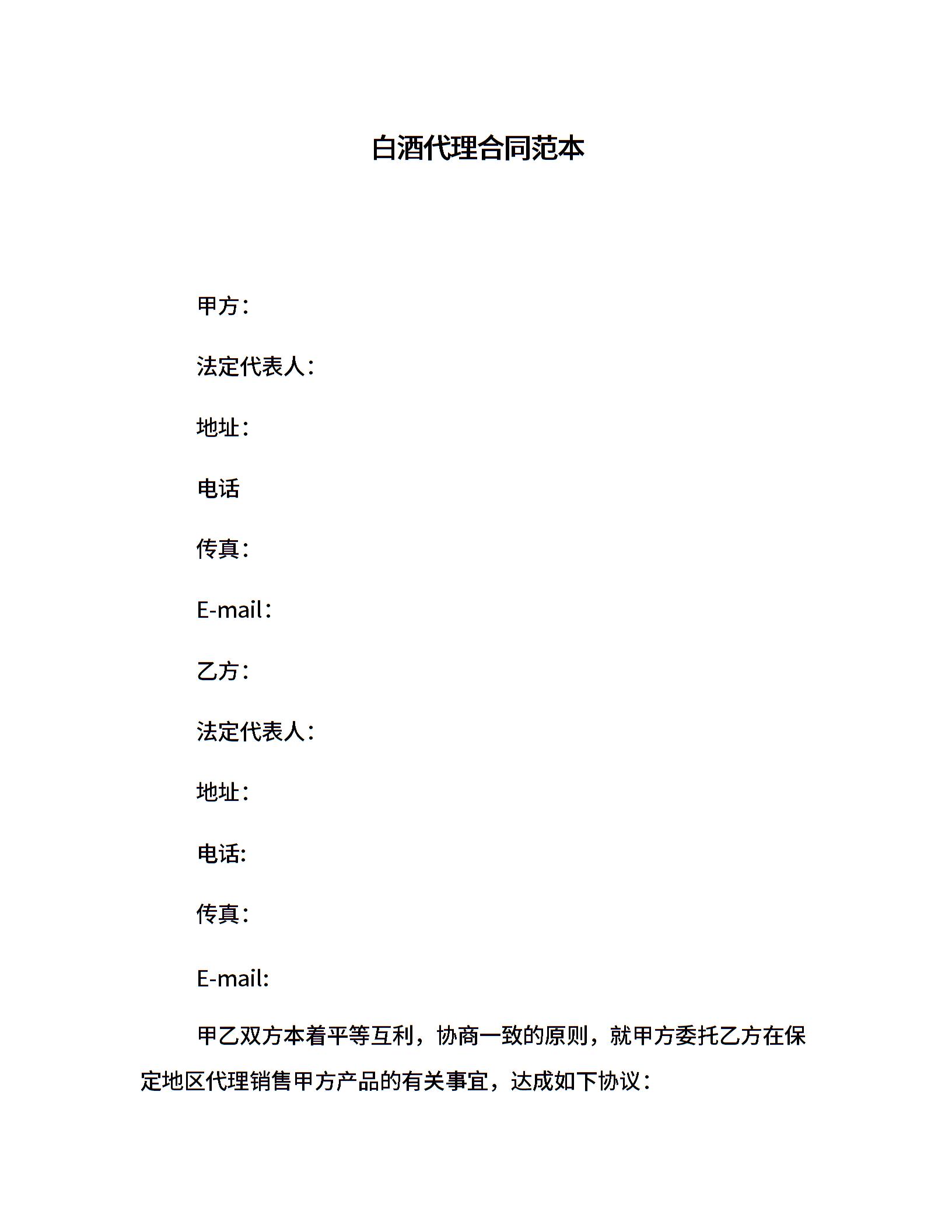 白酒代理合同范本