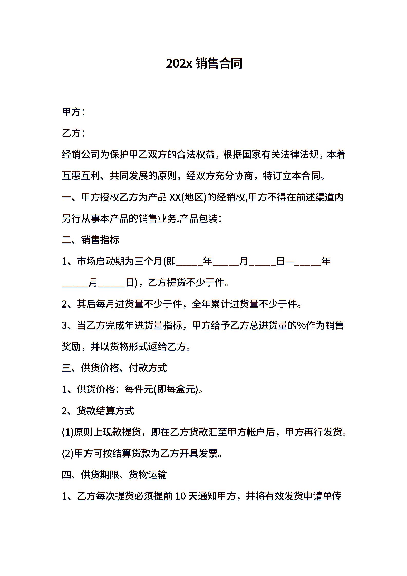 当前位置:量子办公 > 合同模板 > 销售合同 >