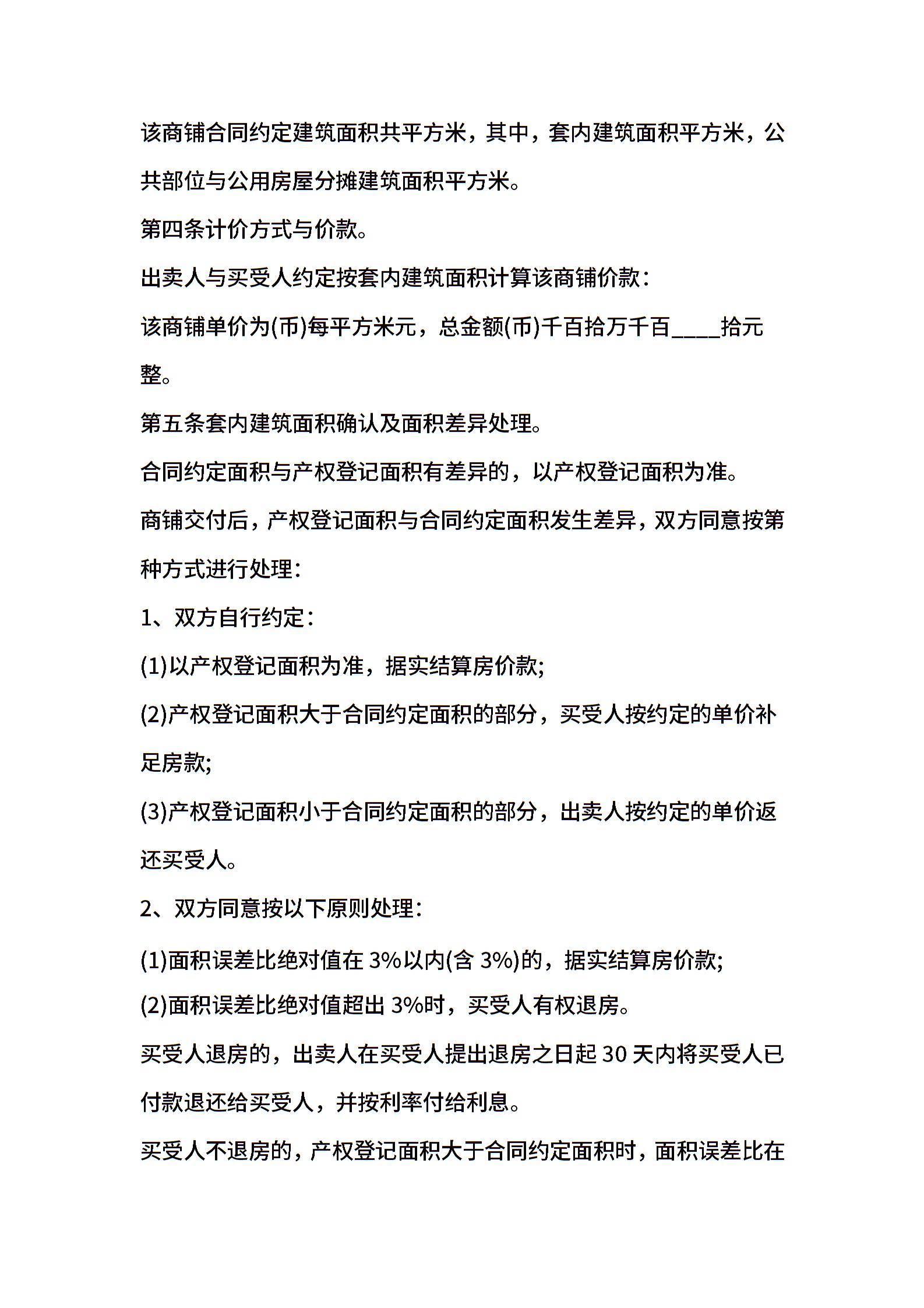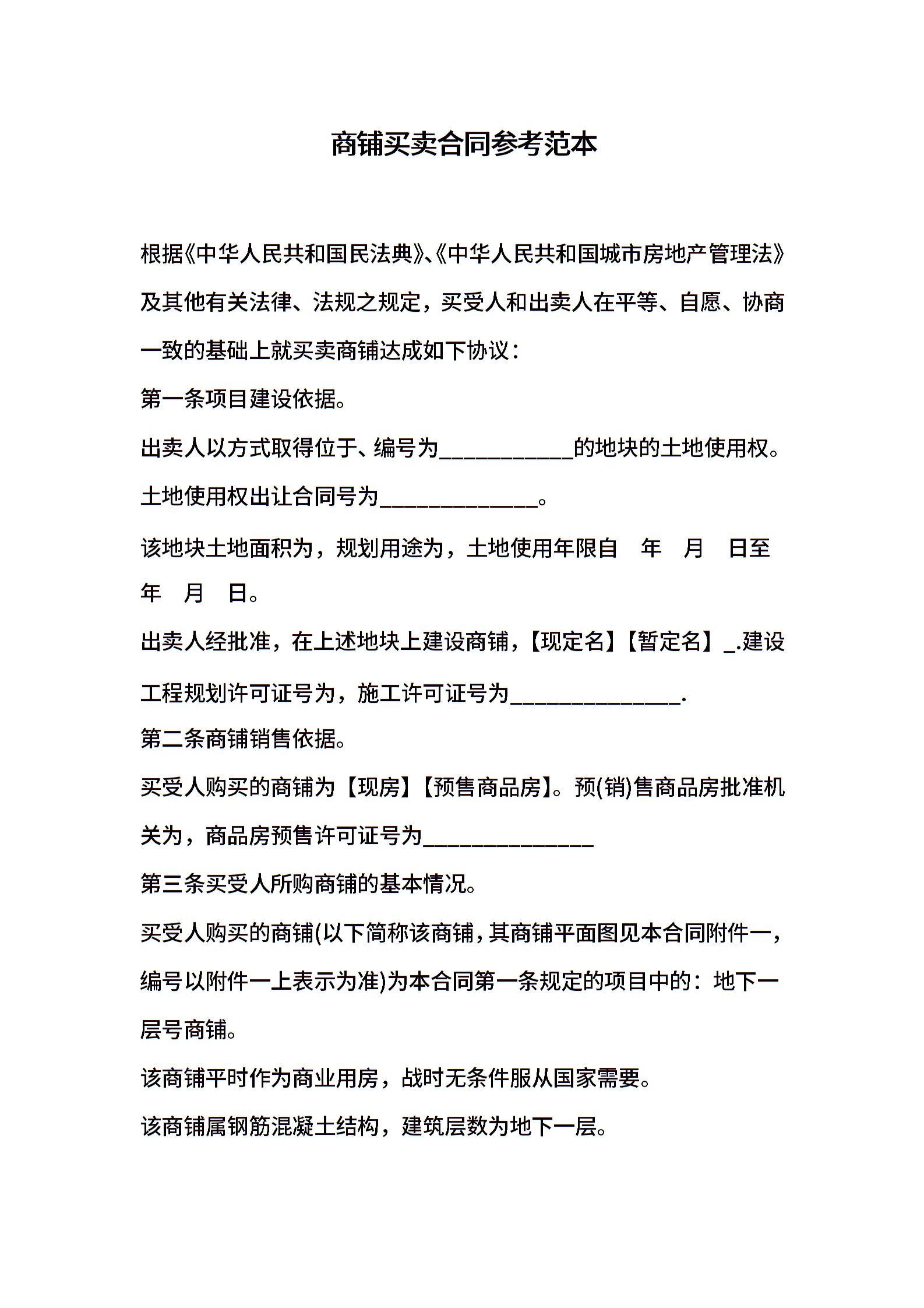 商铺买卖合同参考范本