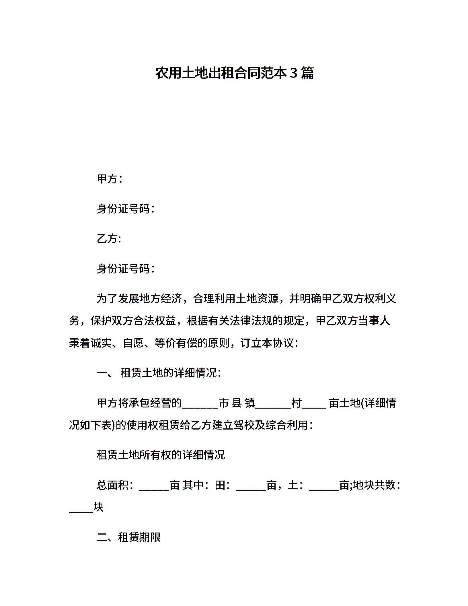 农用土地出租合同范本3篇
