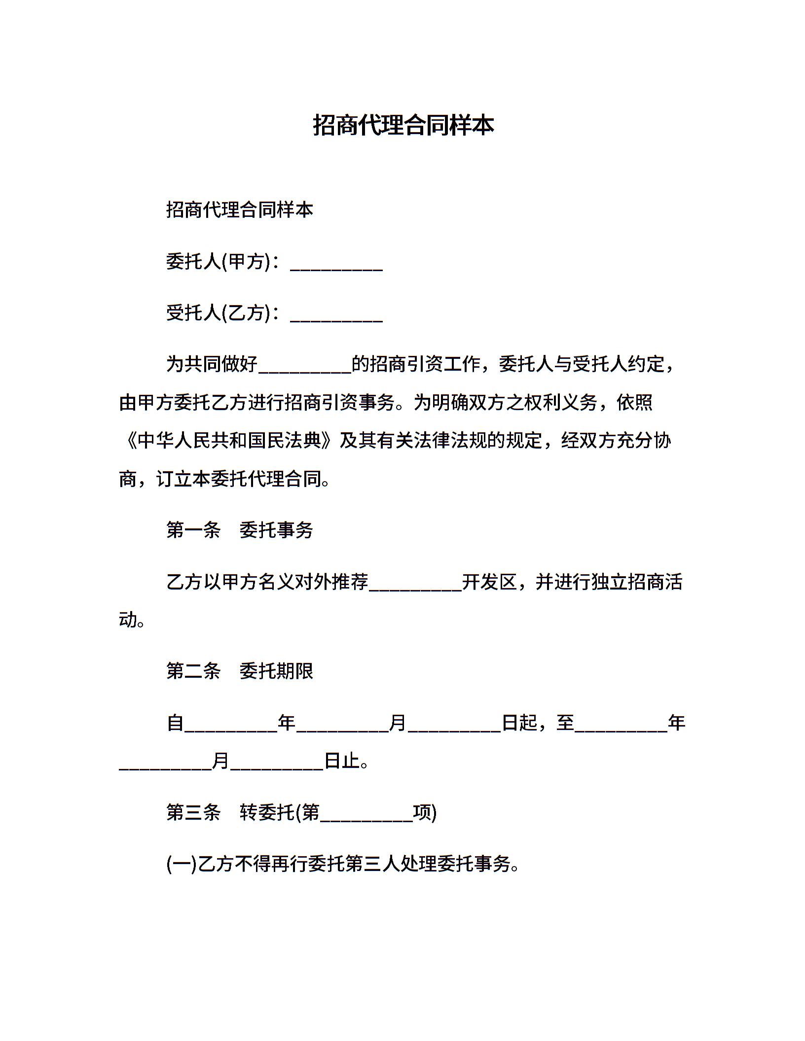 招商代理合同样本