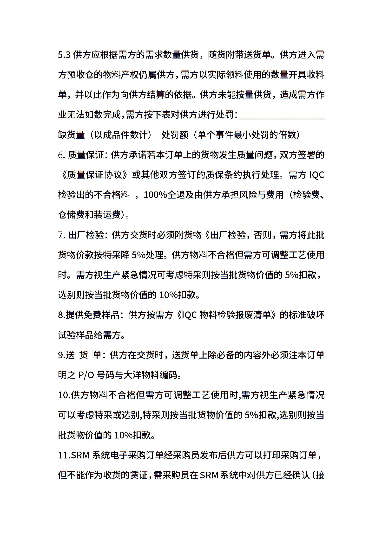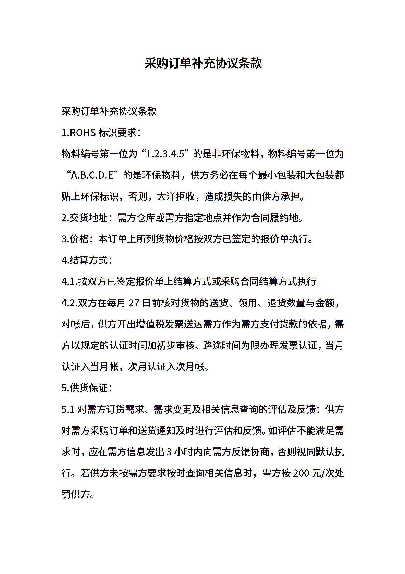 采购订单补充协议条款