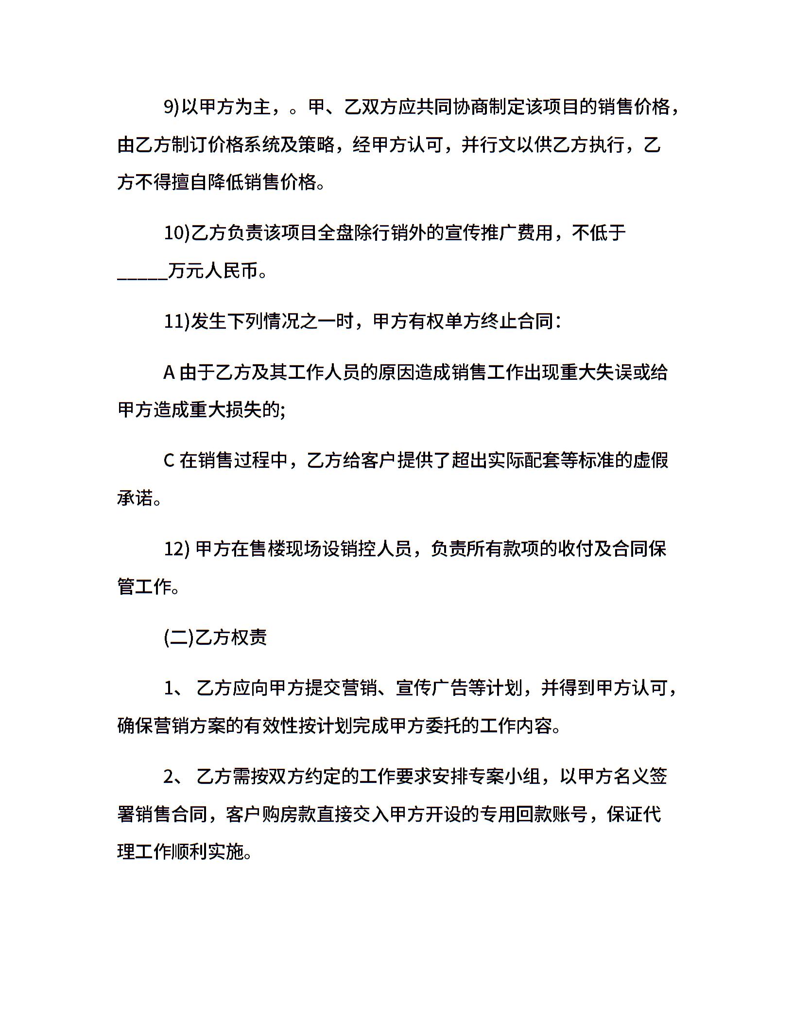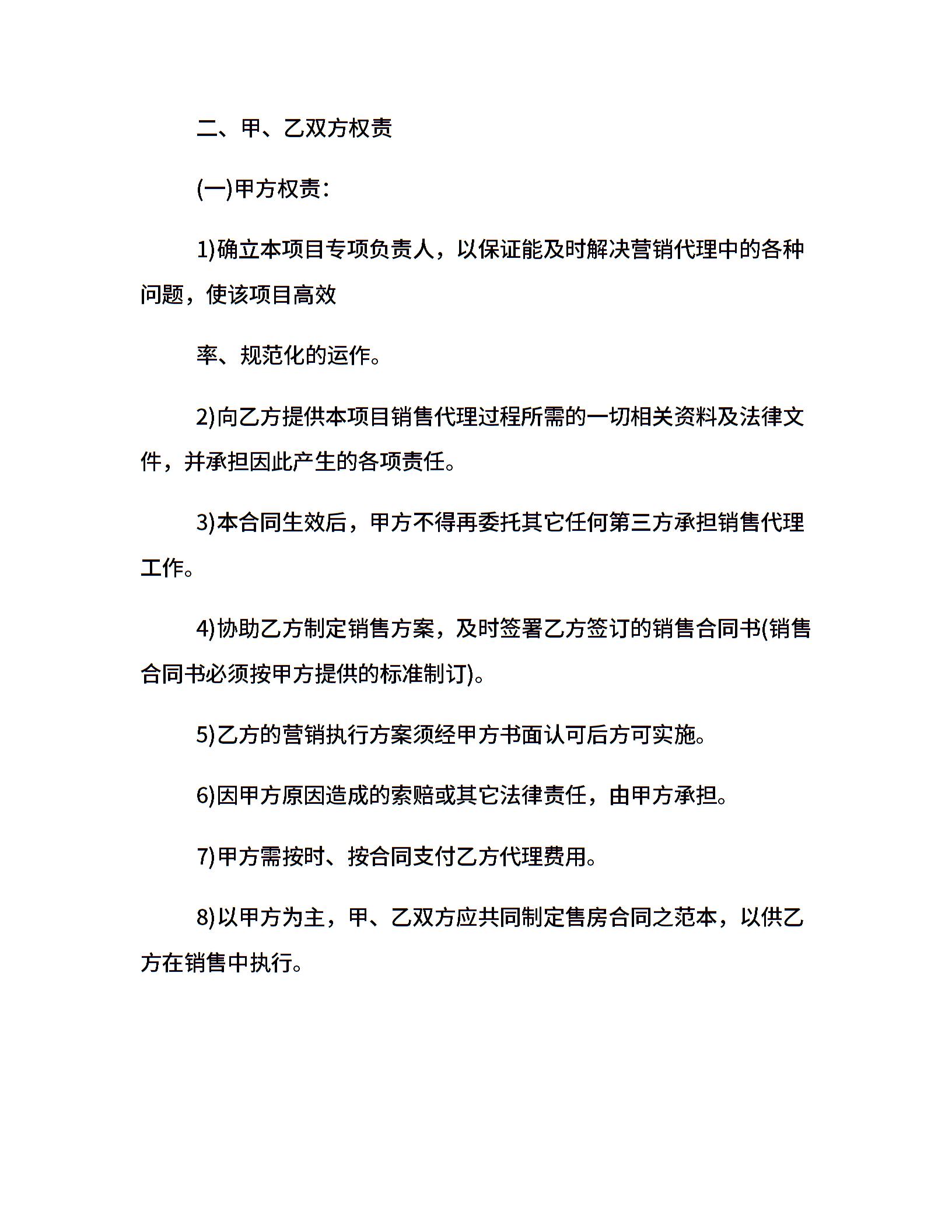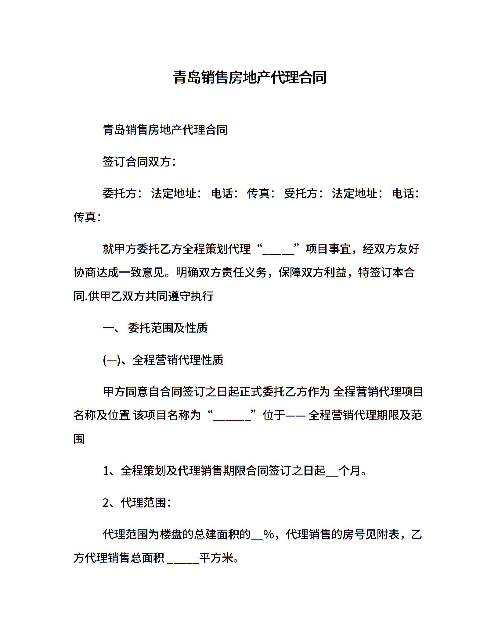 青岛销售房地产代理合同