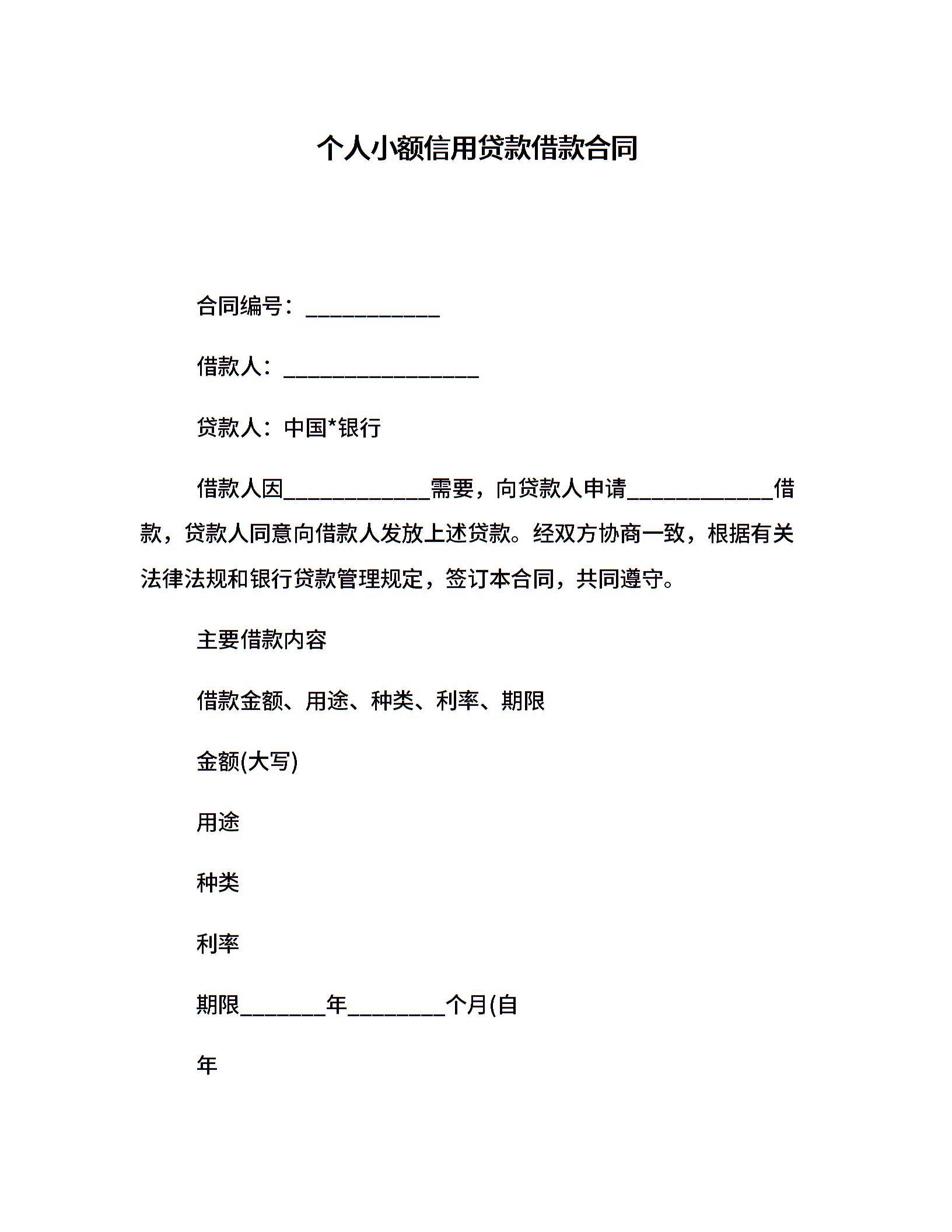 个人小额信用贷款借款合同