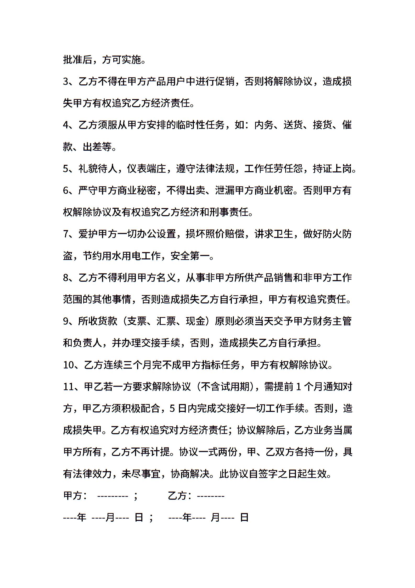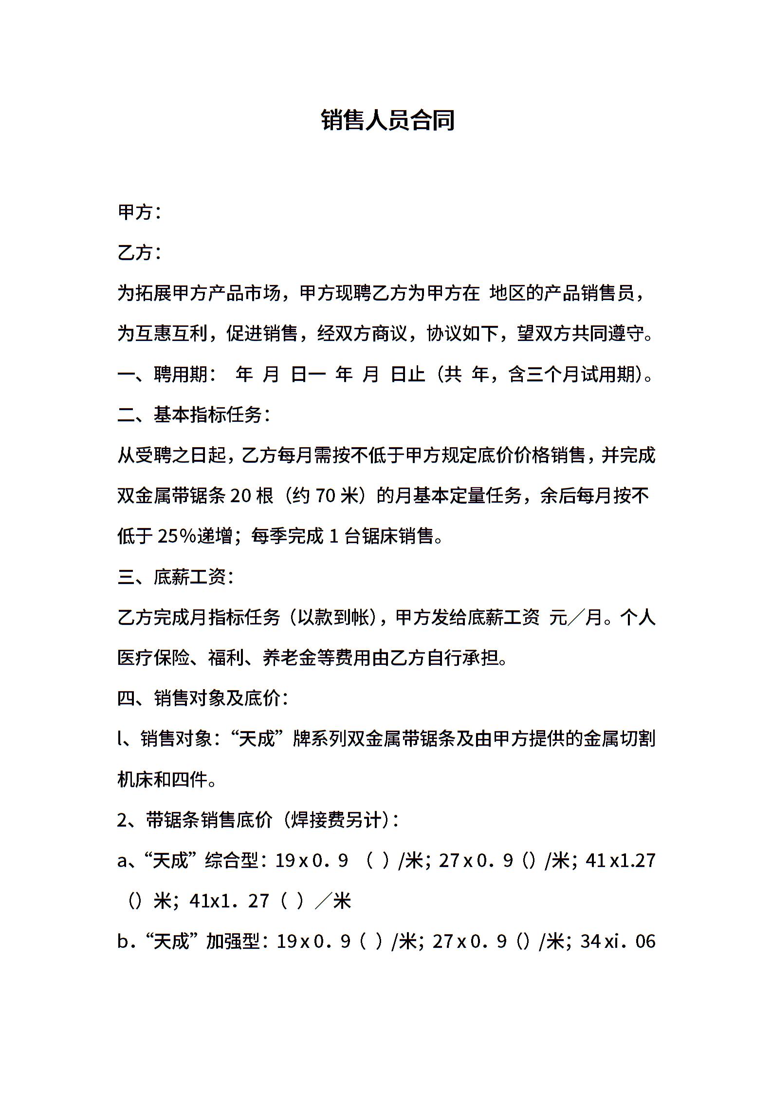 销售人员合同