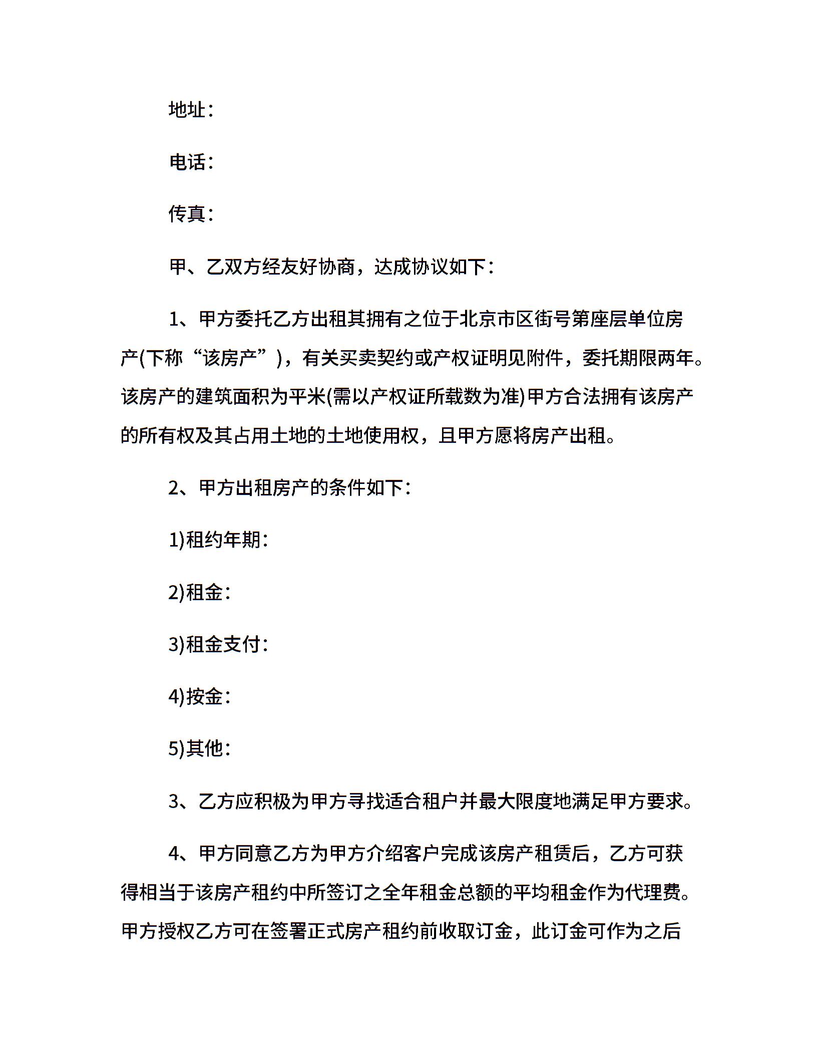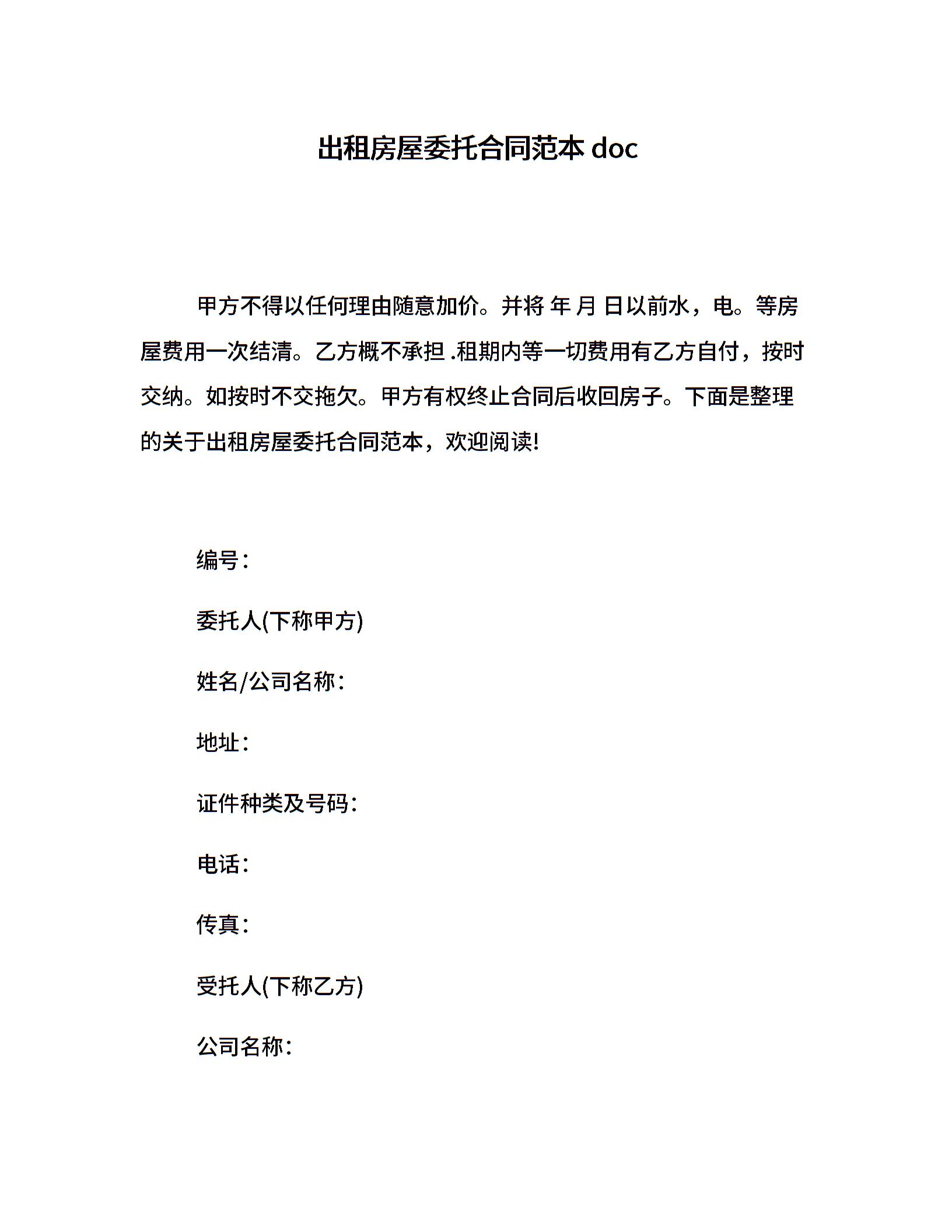 出租房屋委托合同范本doc