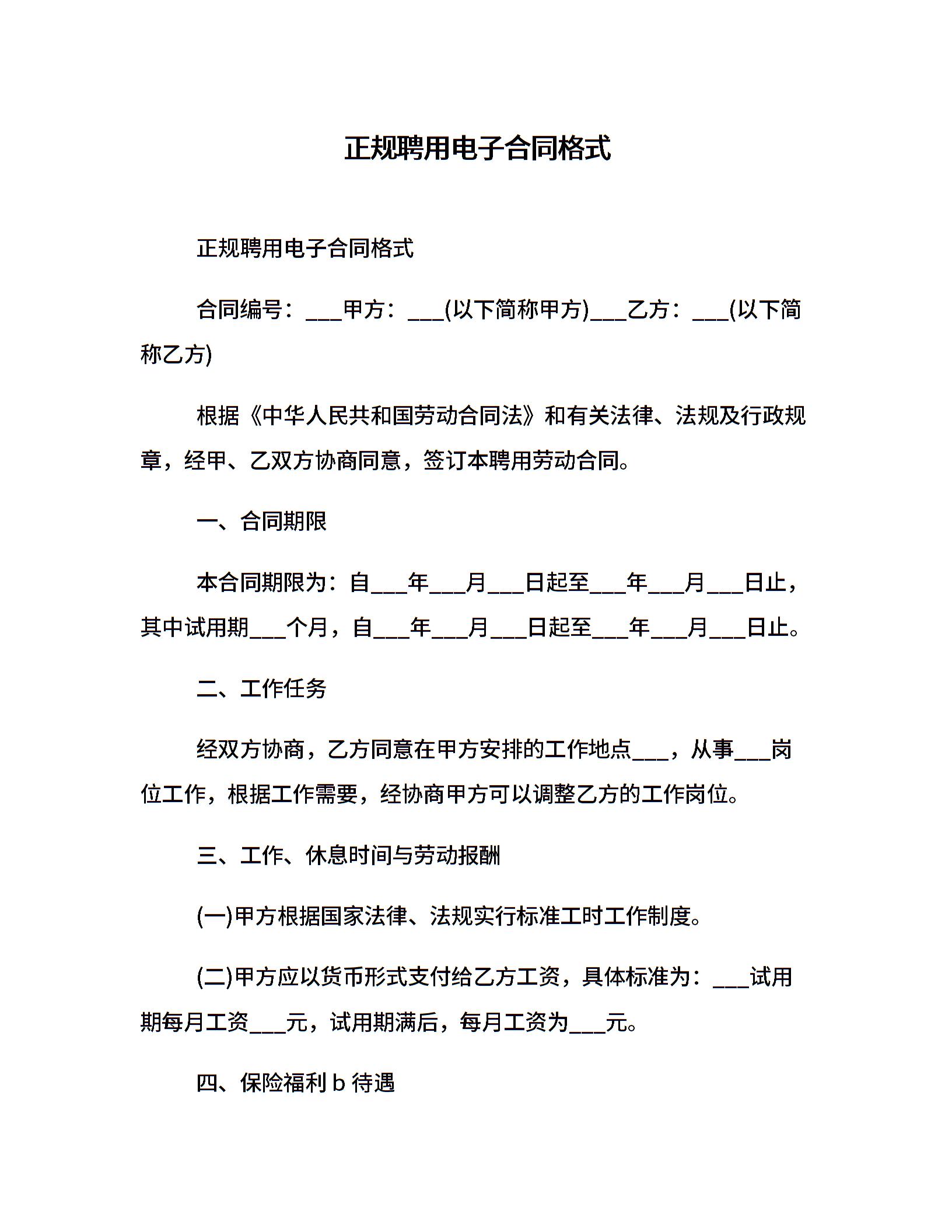 正规聘用电子合同格式