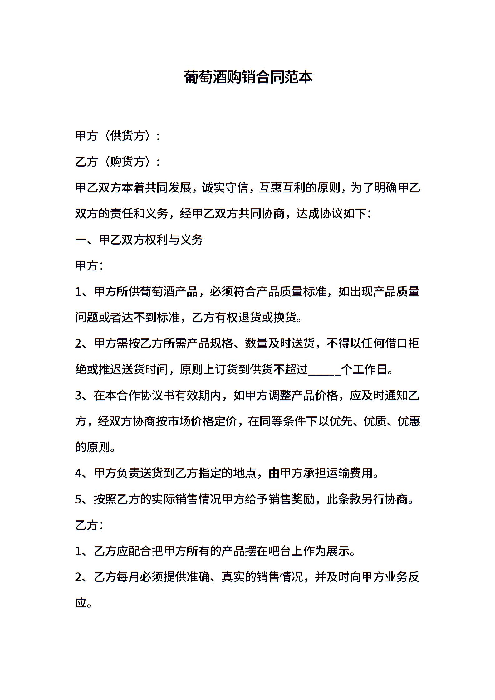 葡萄酒购销合同范本