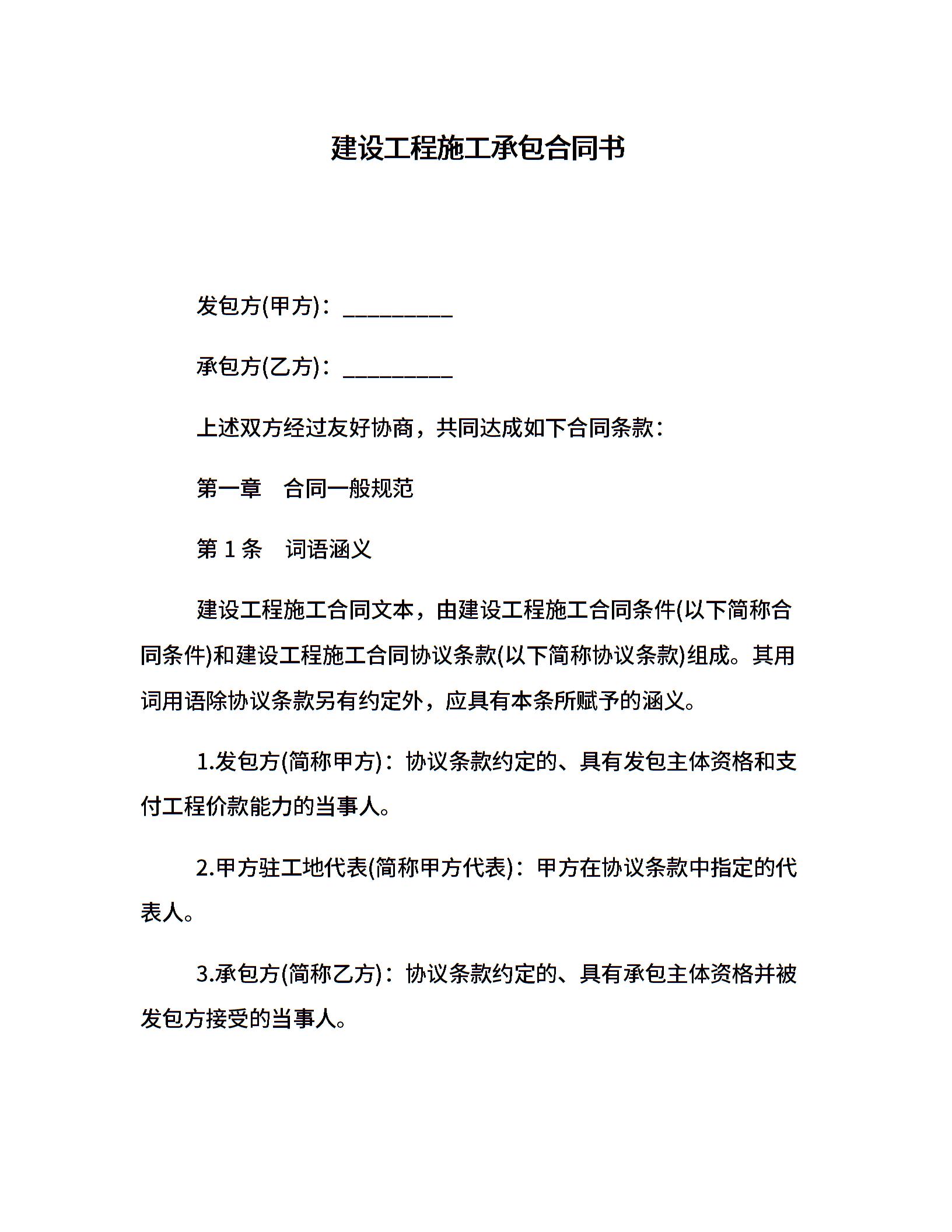 建设工程施工承包合同书