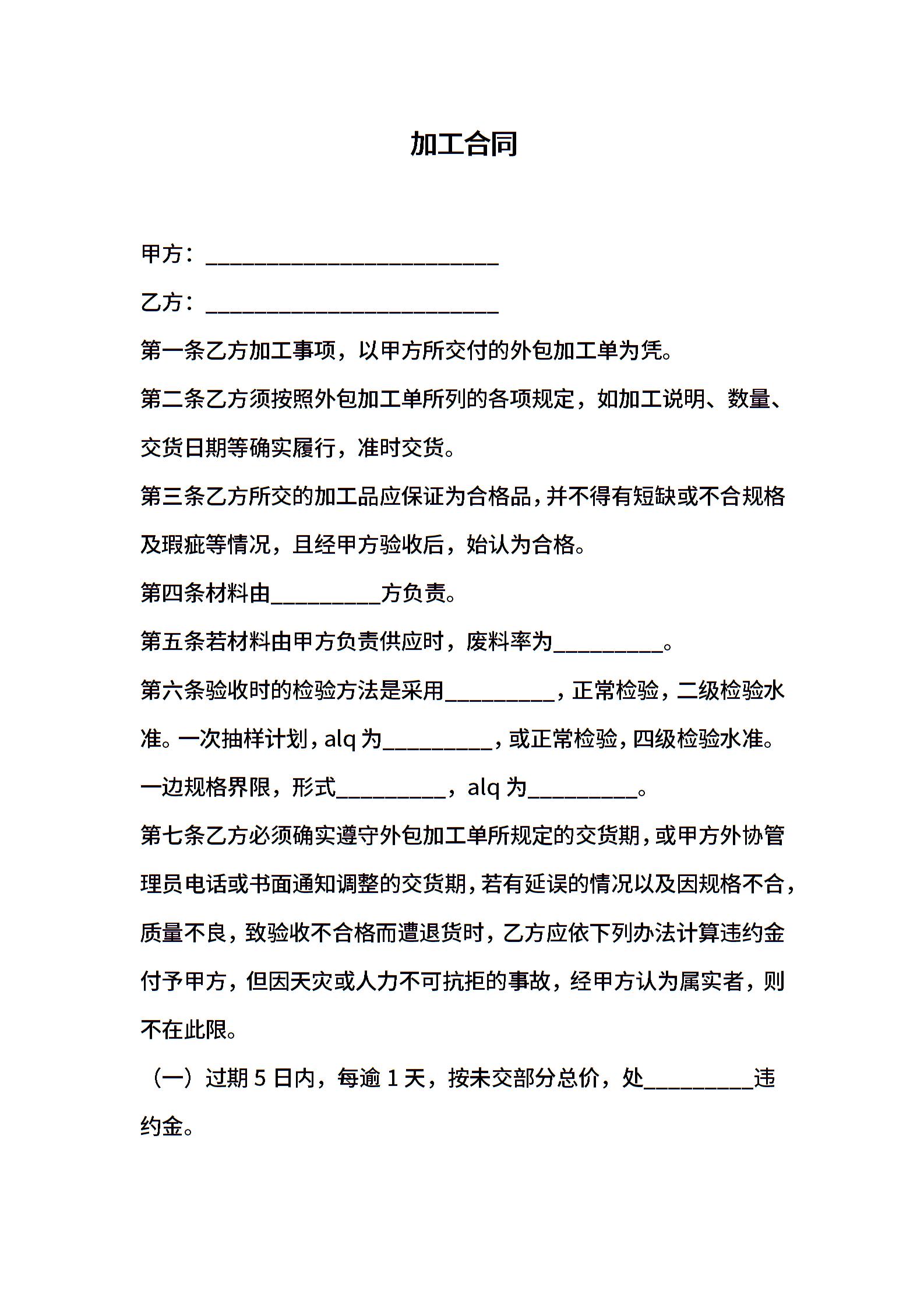 当前位置:量子办公 > 合同模板 > 加工合同 >