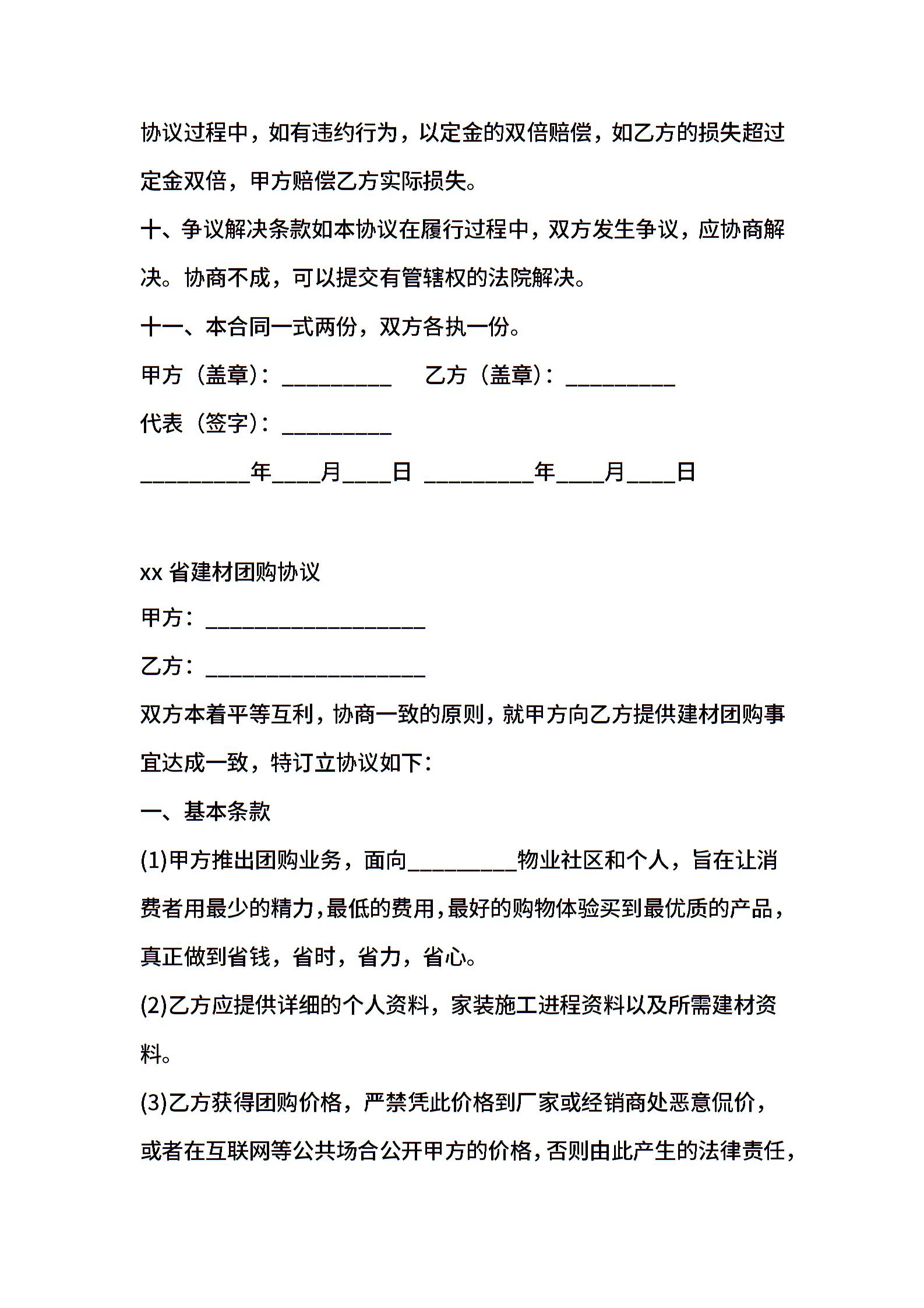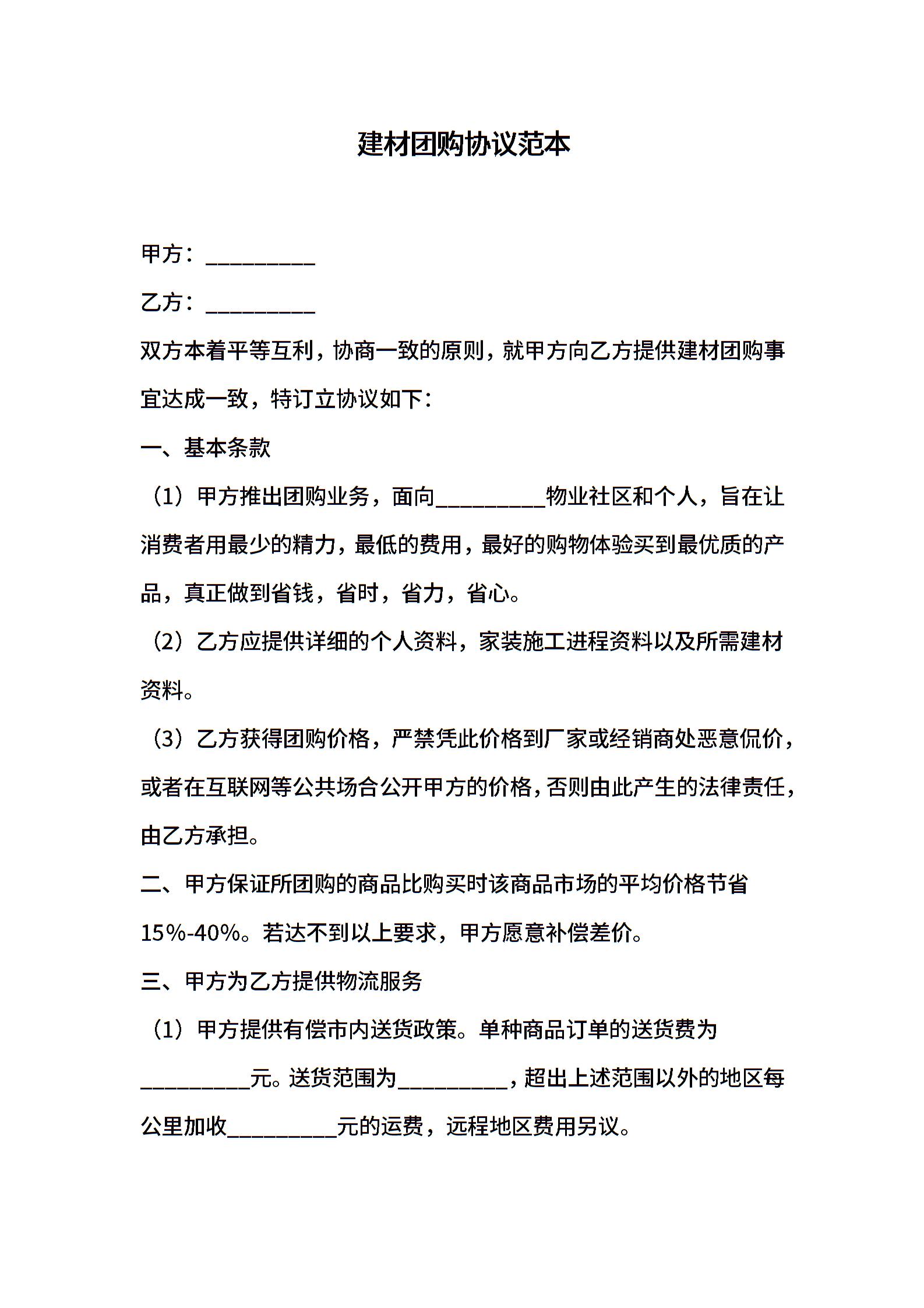 建材团购协议范本