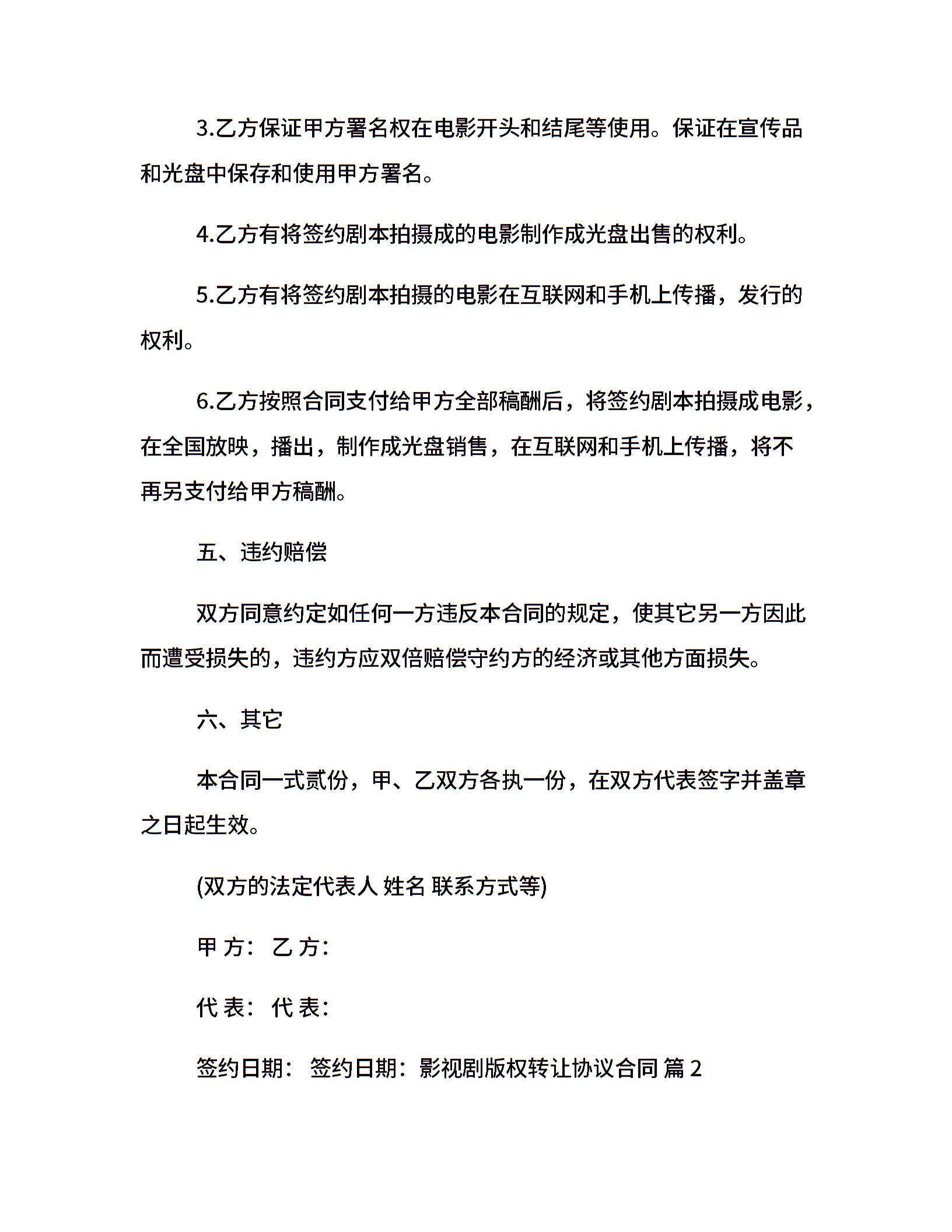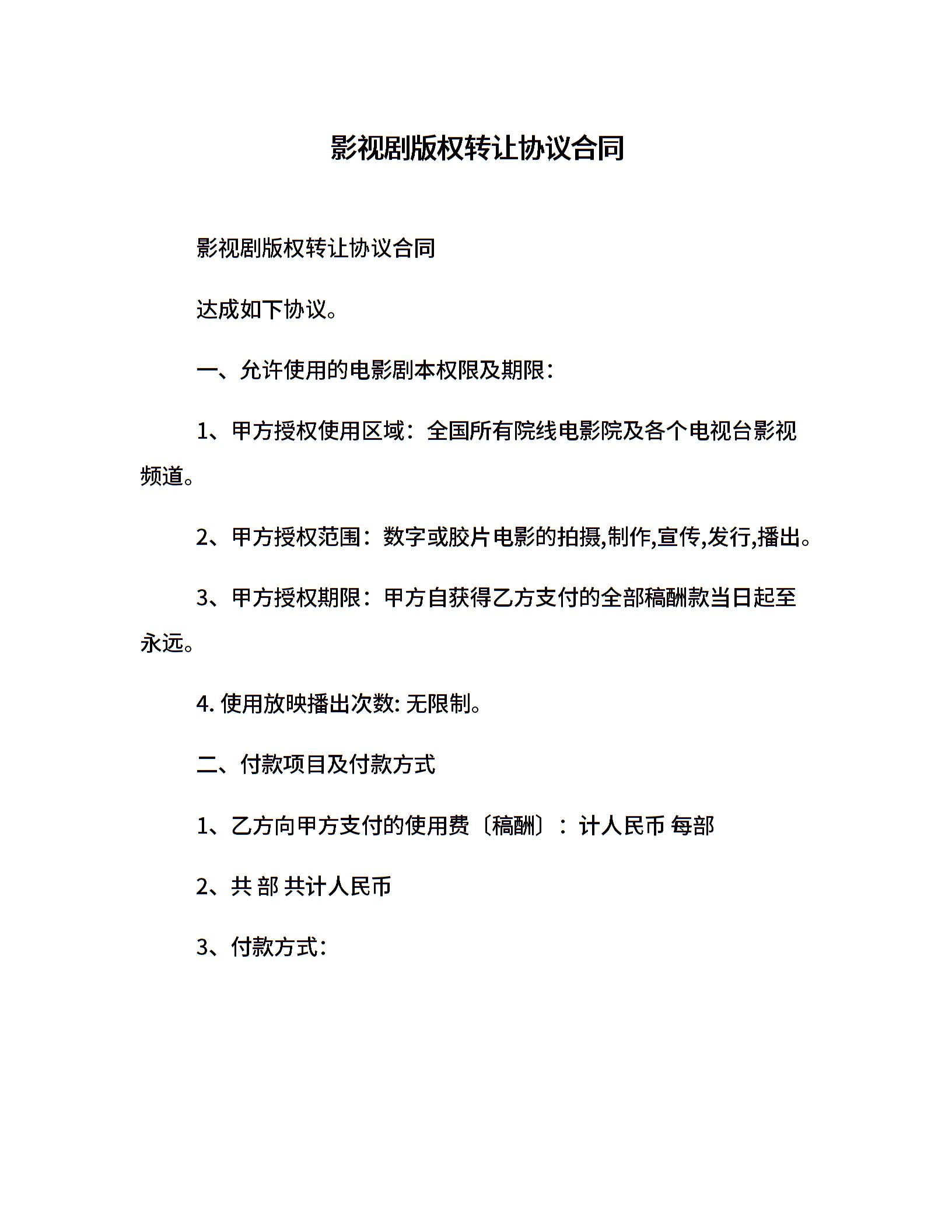 影视剧版权转让协议合同