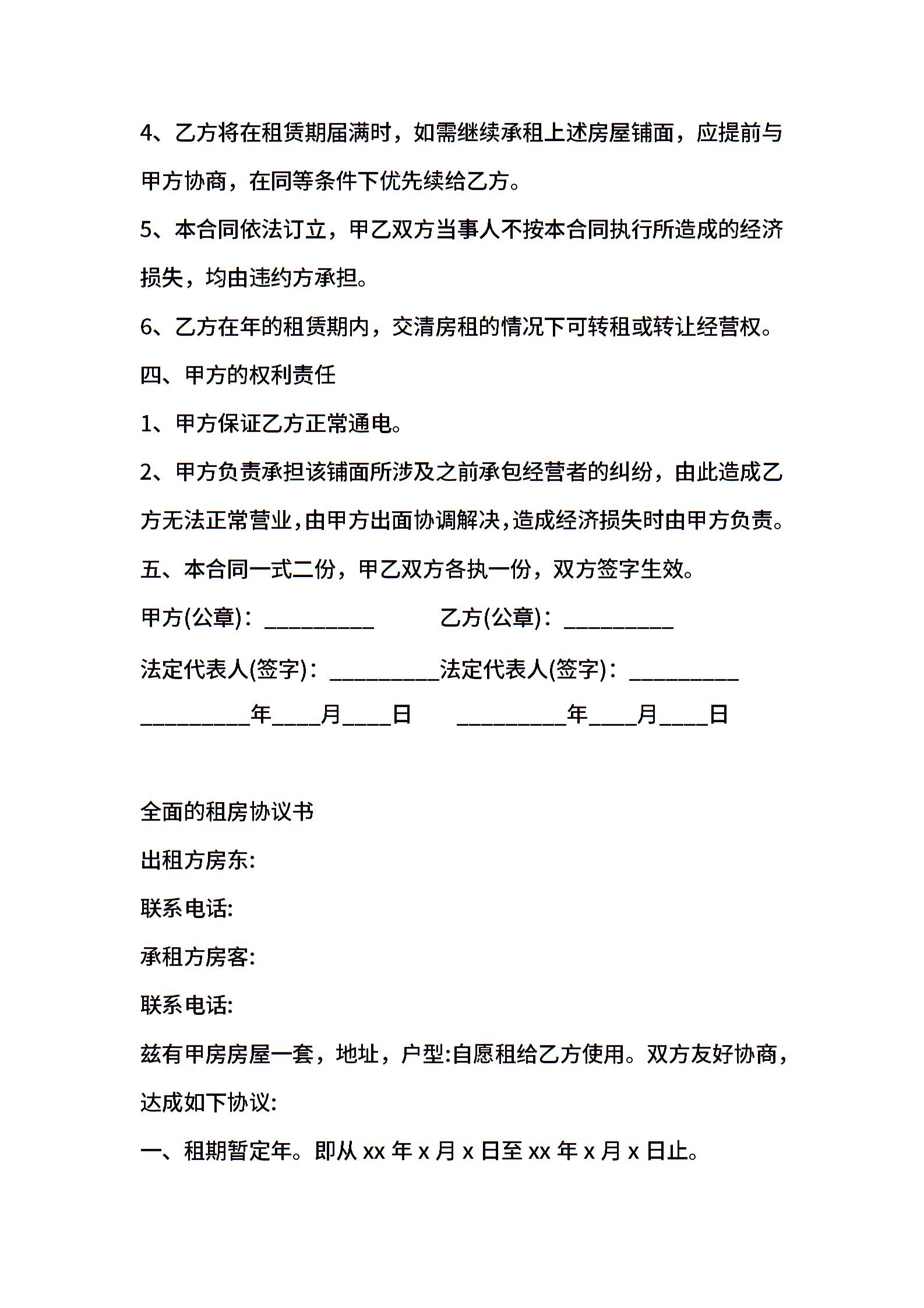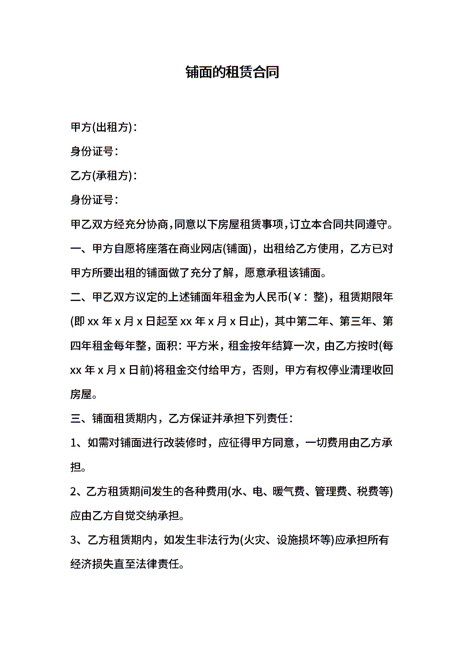 铺面的租赁合同