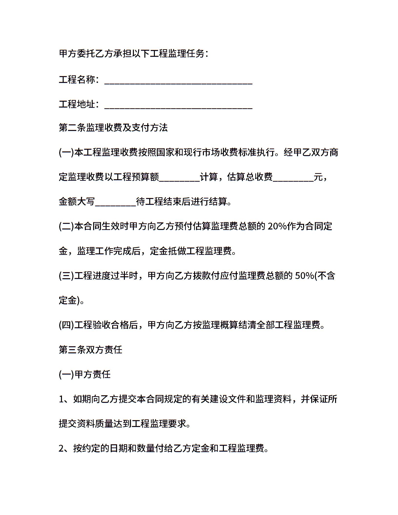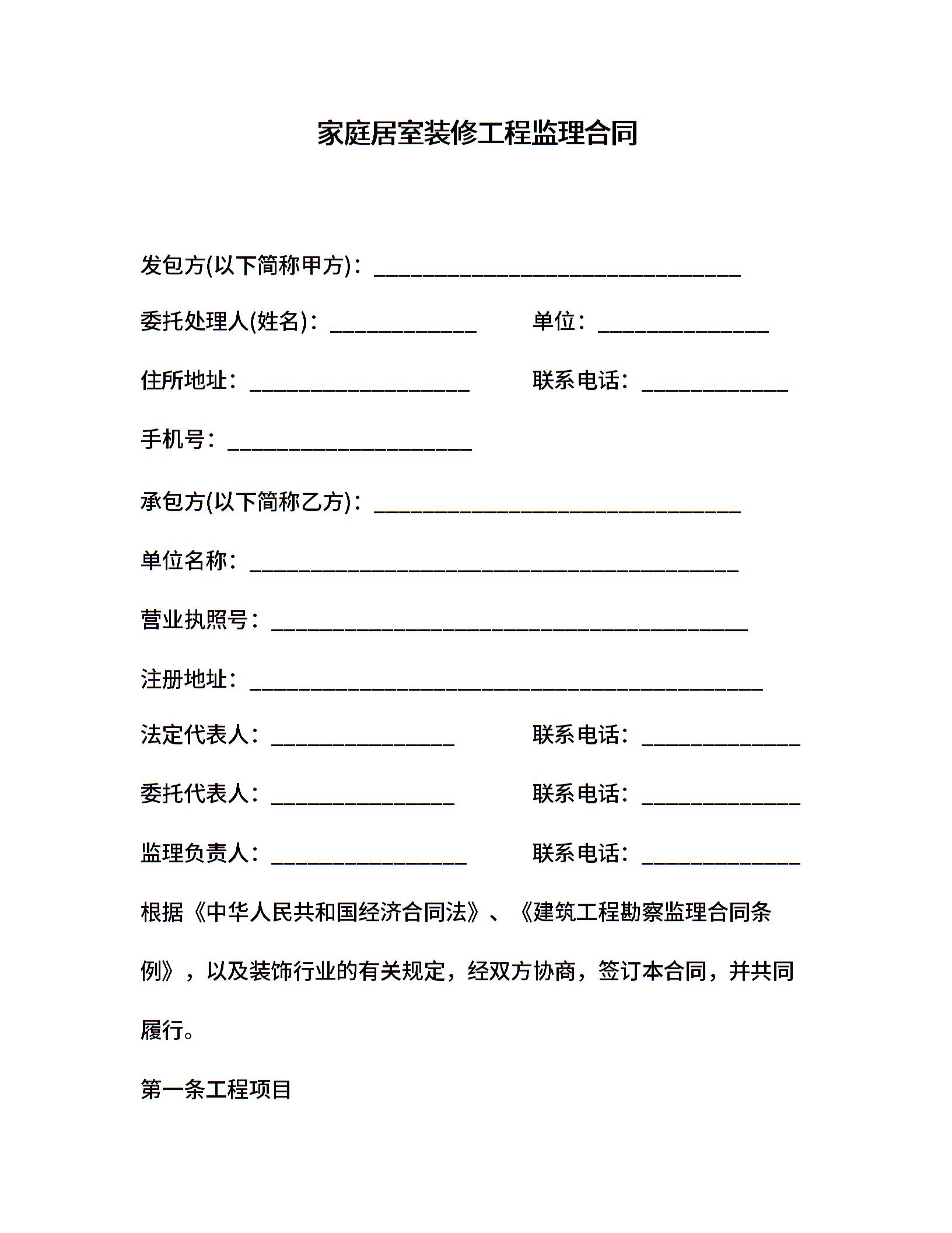 家庭居室装修工程监理合同