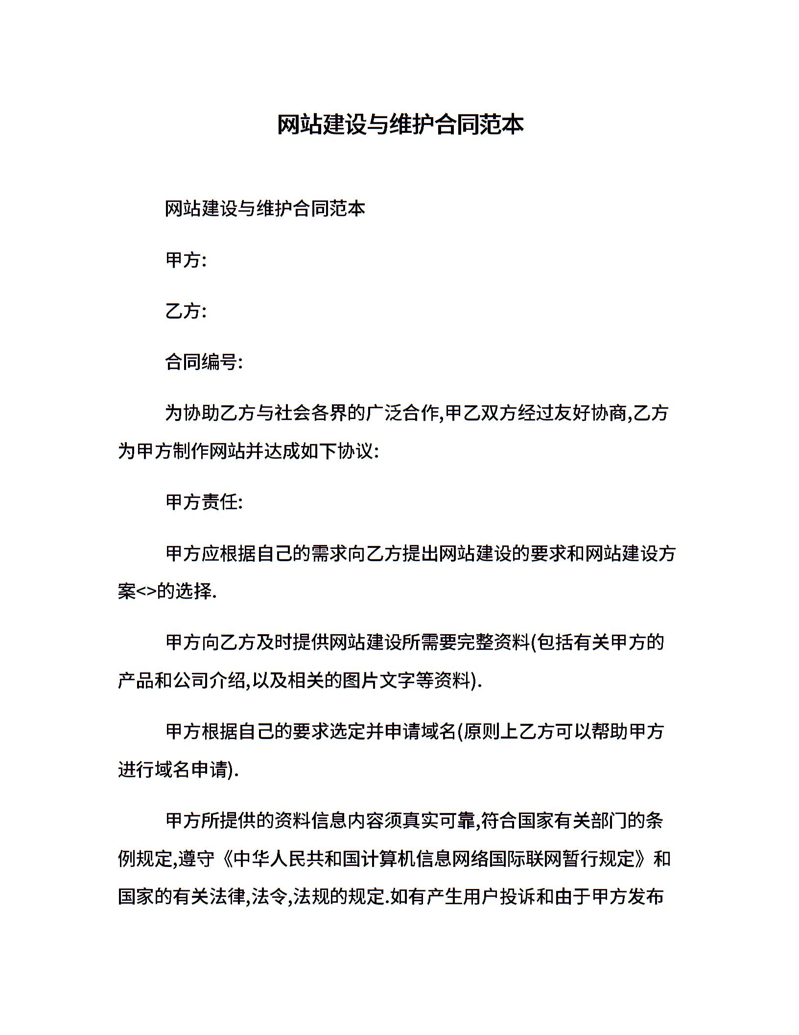 网站建设与维护合同范本