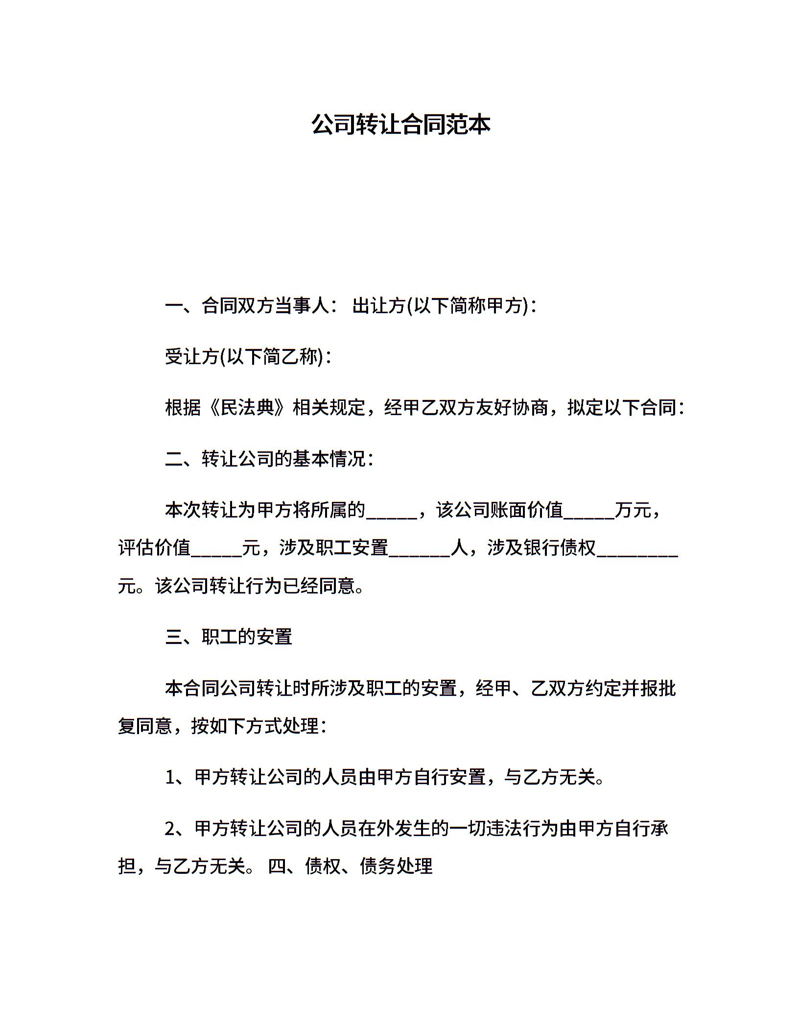 公司转让合同范本