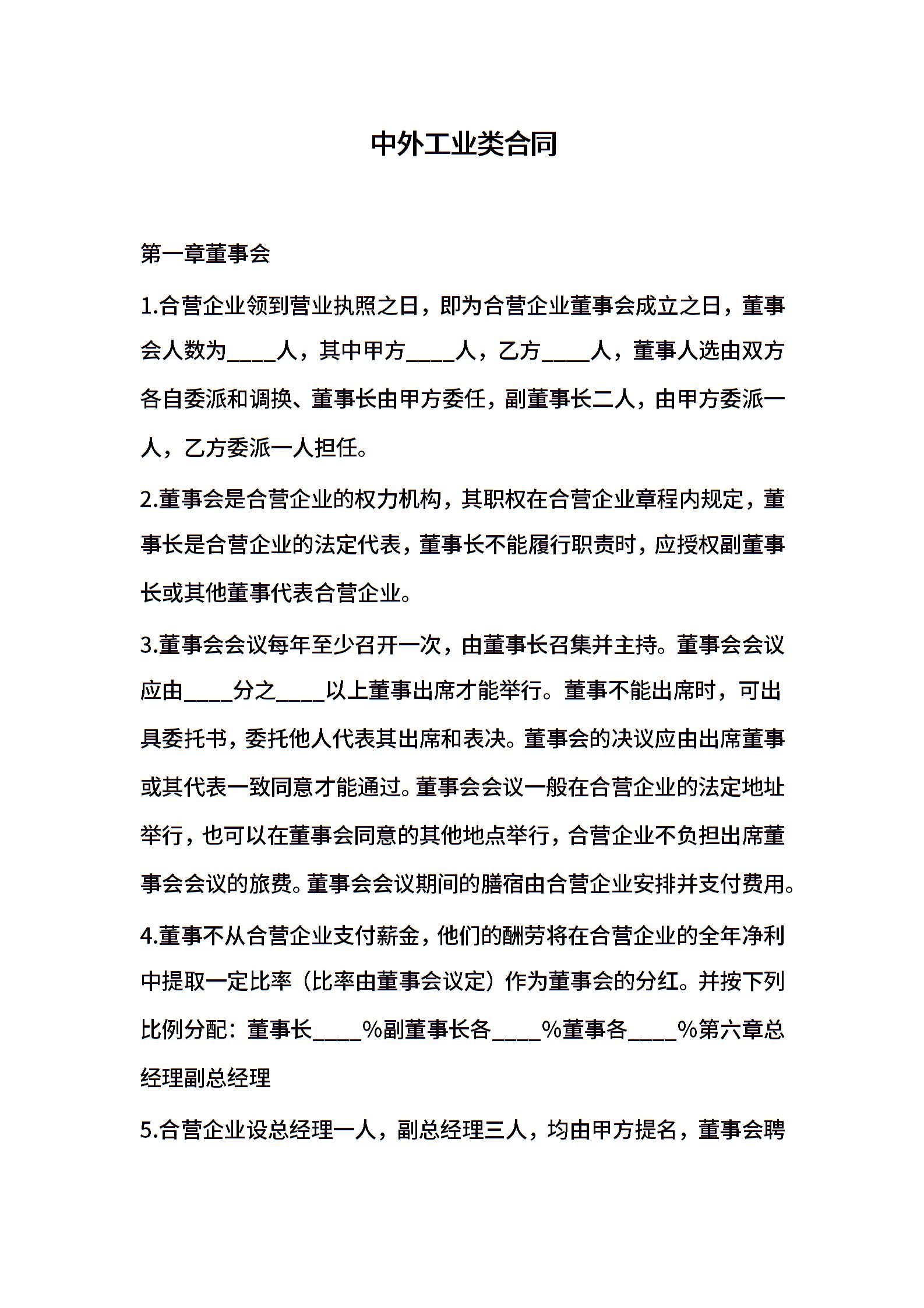 中外工业类合同