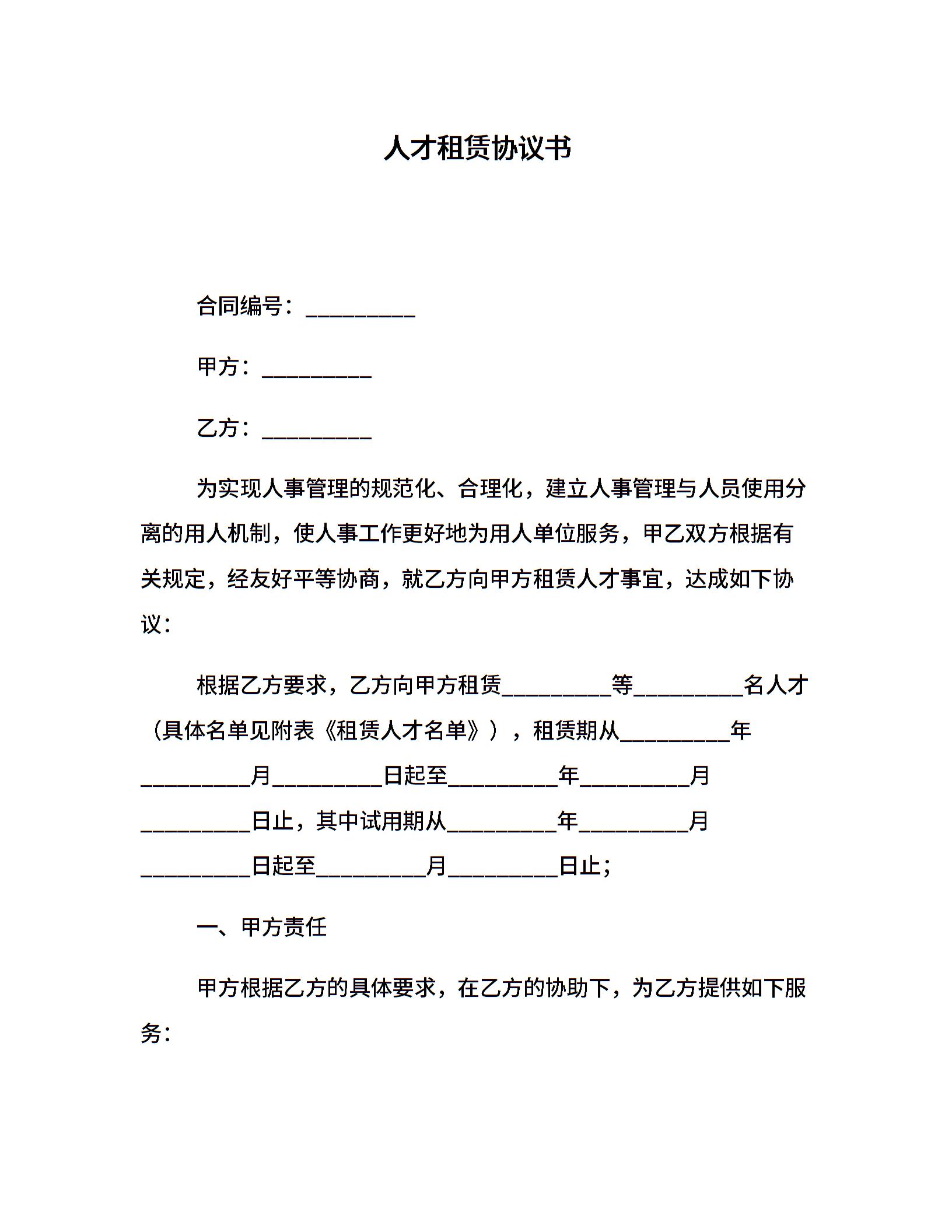 人才租赁协议书