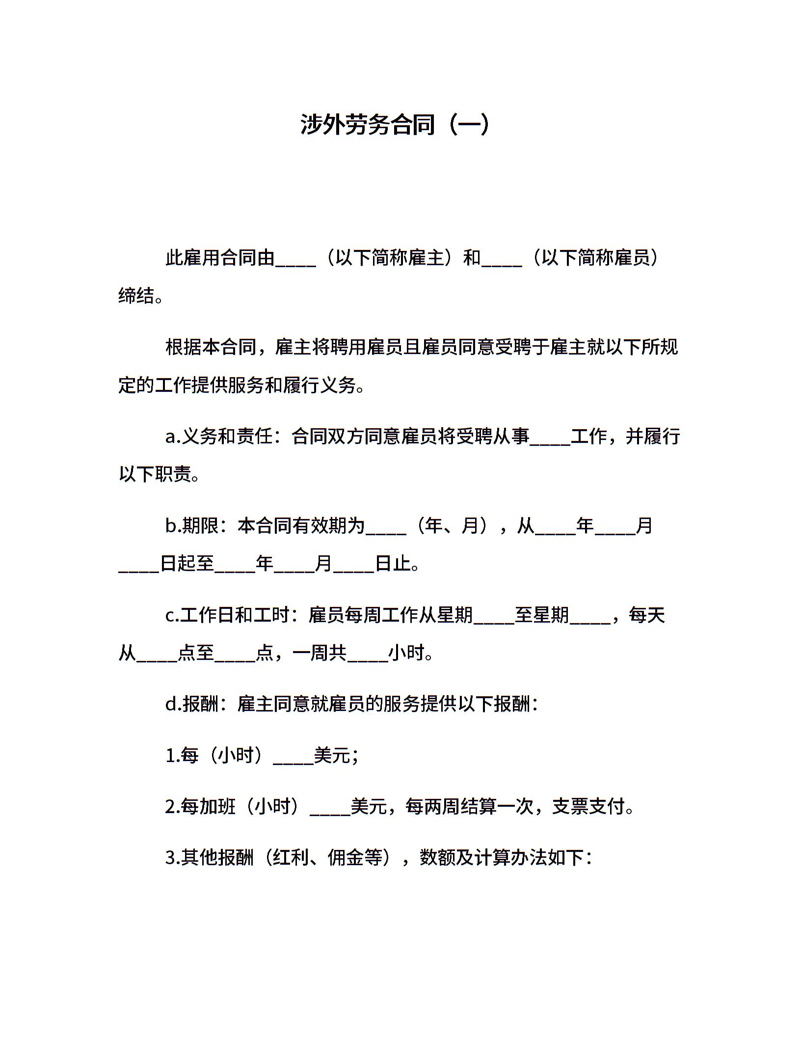 涉外劳务合同(一)
