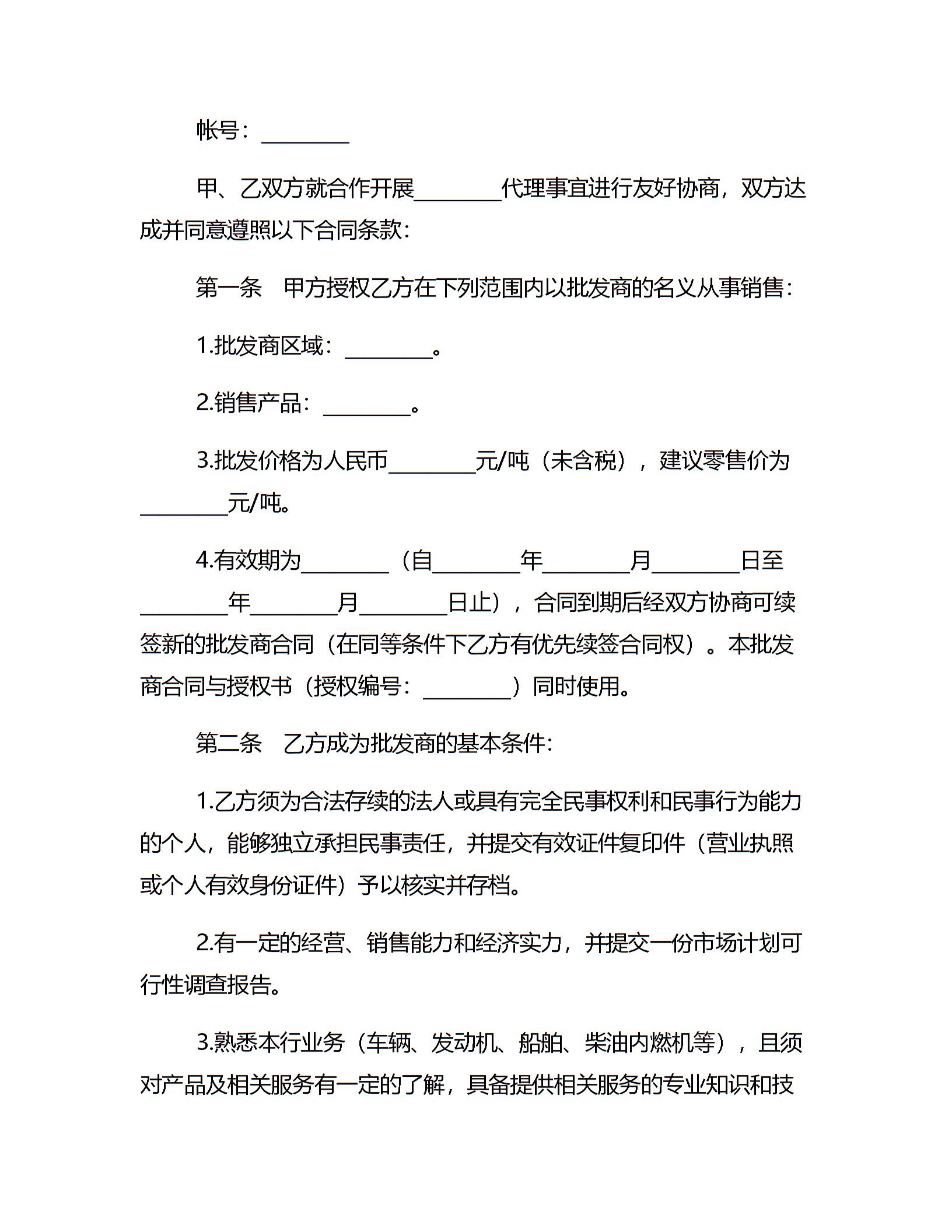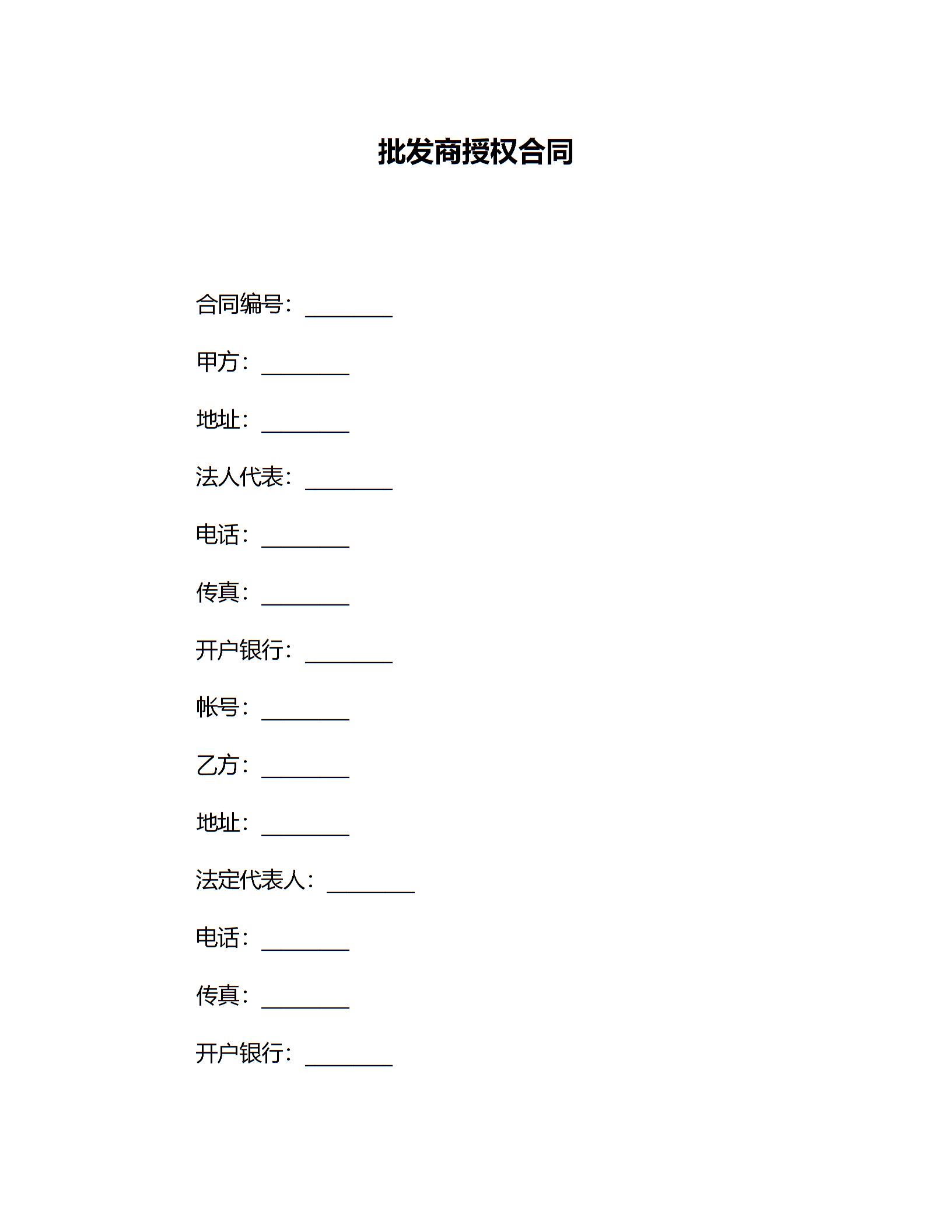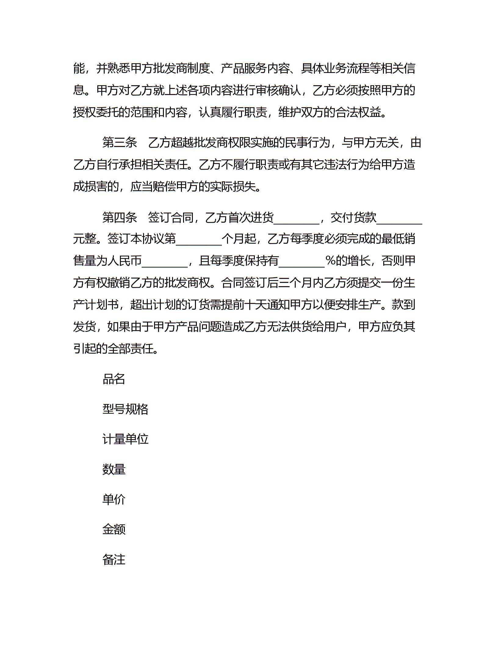 批发商授权合同