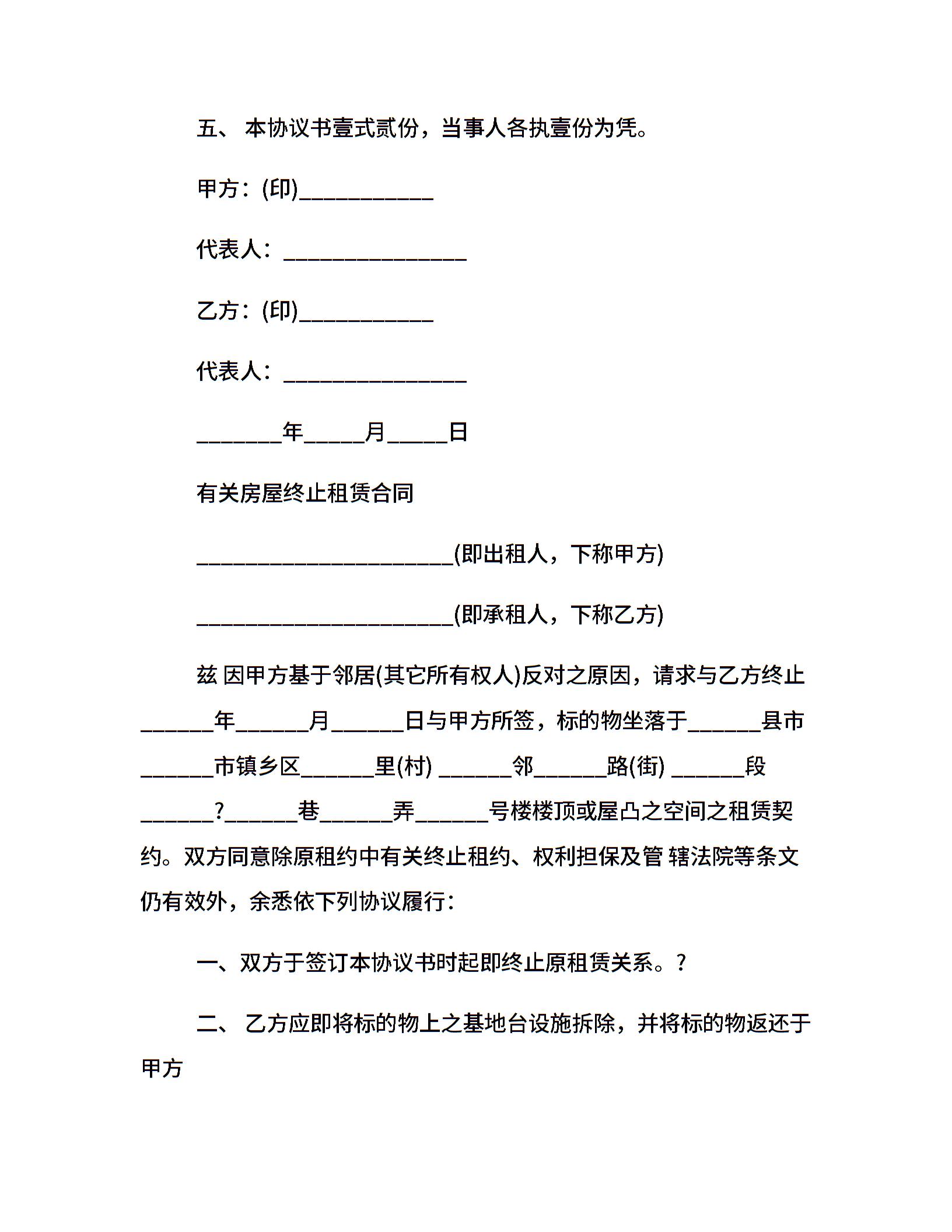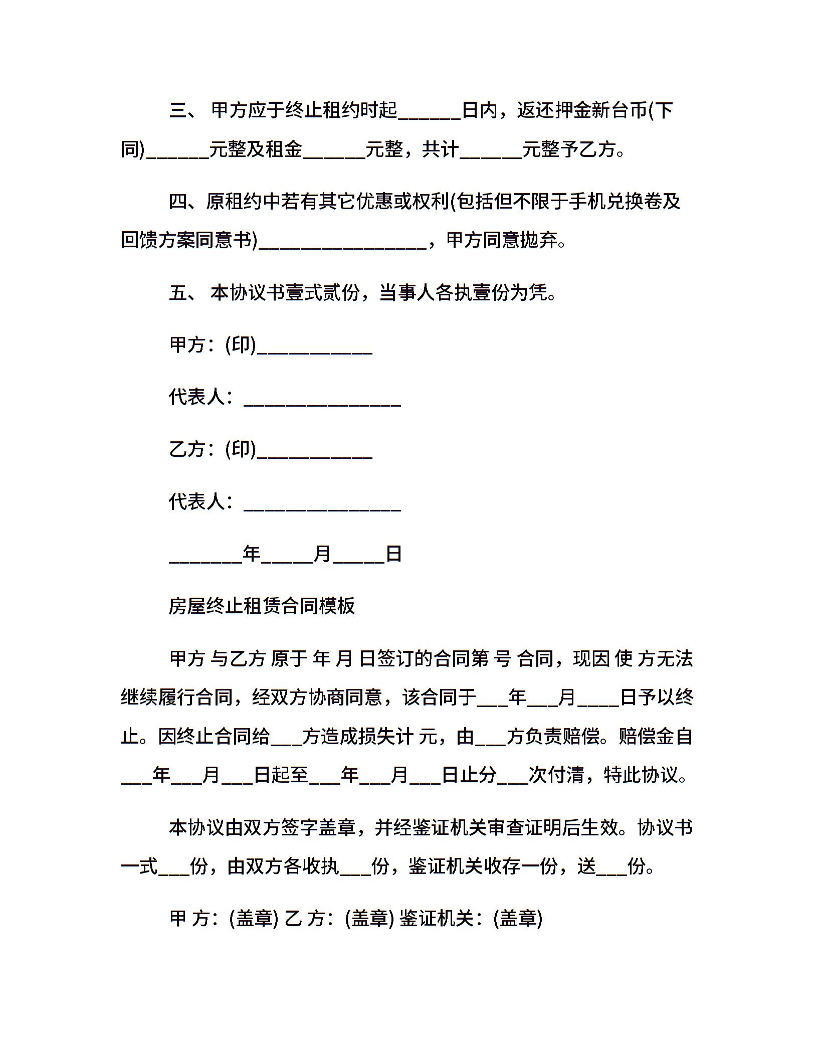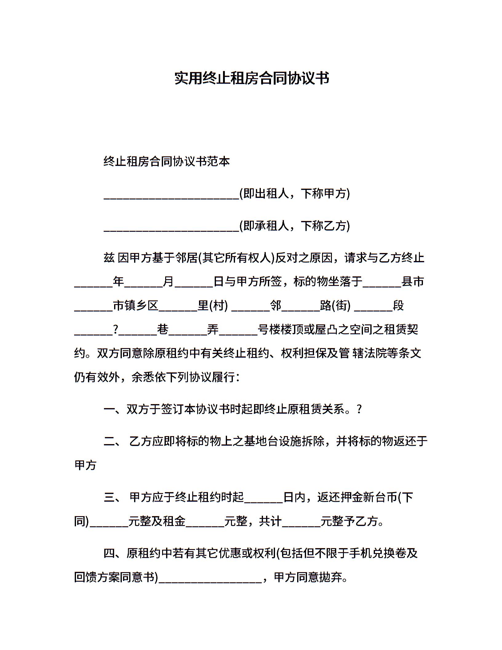 实用终止租房合同协议书