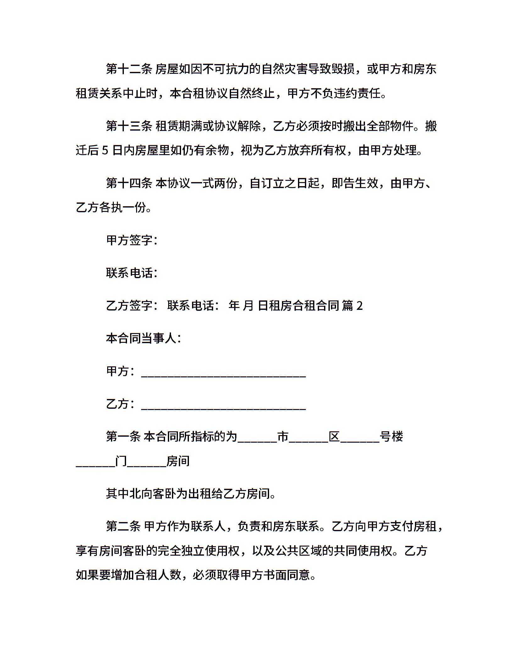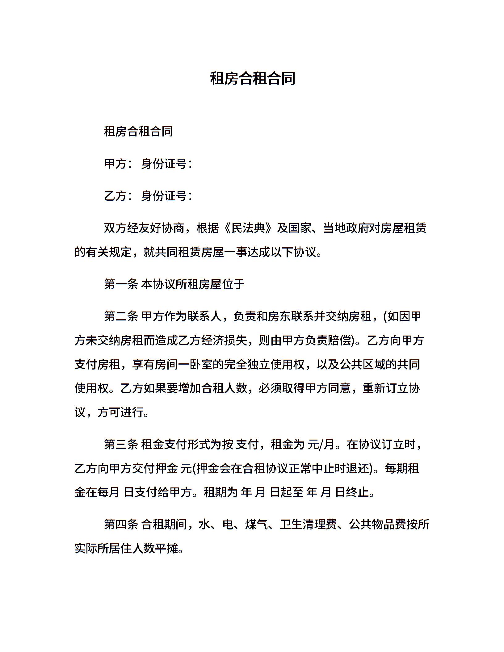 租房合租合同