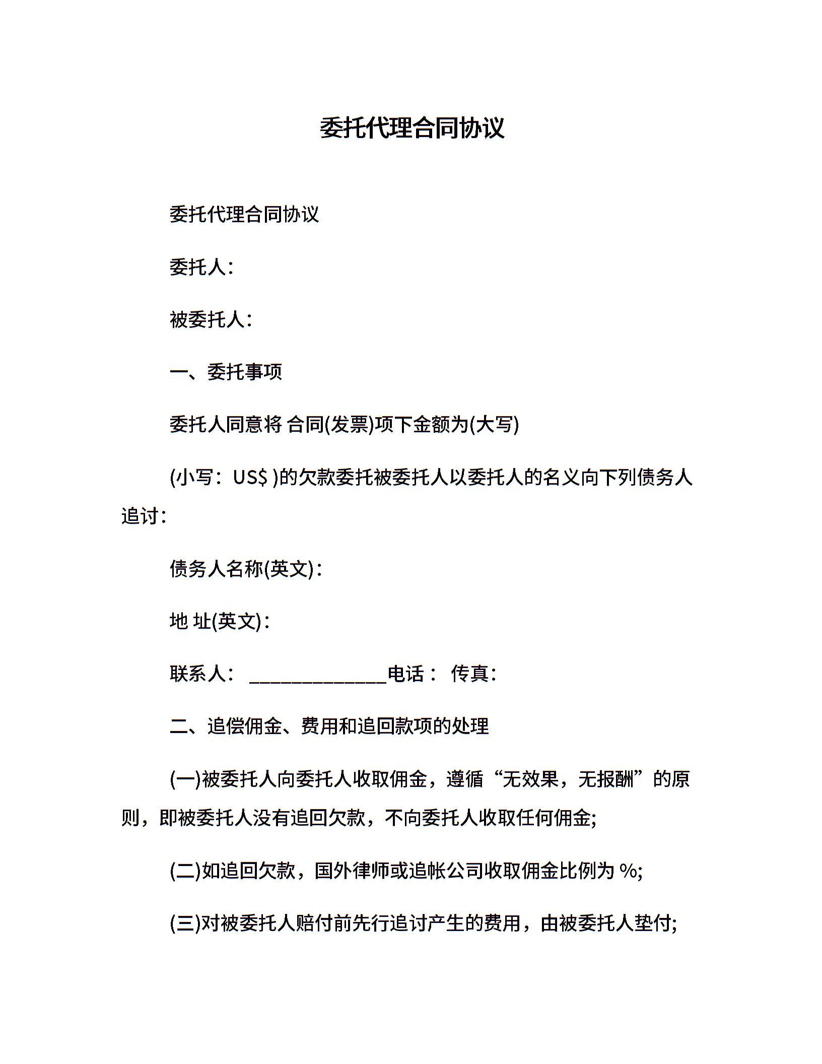 委托代理合同协议